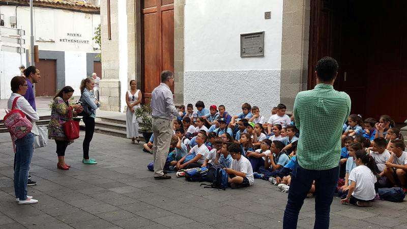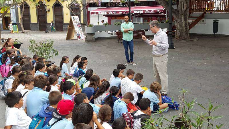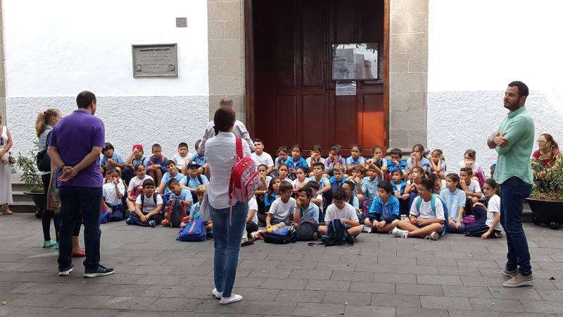 Telde.- El cronista oficial de Telde, Antonio González, explicó este martes a un grupo de casi 60 alumnos del CEIP Príncipe de Asturias (Melenara) la leyendas y misterios que perviven en la ciudad en un paseo por Los Llanos. TA ofrece reportaje gráfico del paseo cultural de los escolares y de la decoración embrujada de Los Llanos.