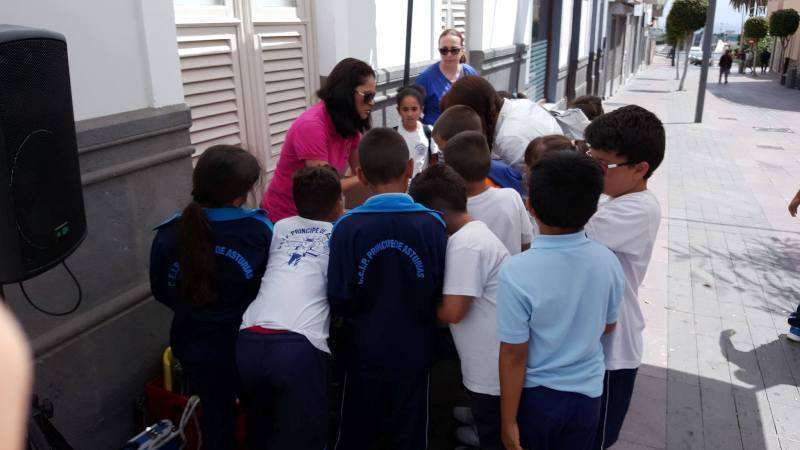 Los alumnos remataron su mañana de brujas con un paseo por la calle principal de Los Llanos, donde la organización de este programa, San Gregorio se embruja, les tenía preparados dos divertidos talleres en plena calle. Se dedicaron a hacer marcalibros y hasta pins alusivos al tema de esta semana de actividades. Hoy miércoles se repetirá la sesión con otro grupo de escolares, también del colegio Príncipe de Asturias, de Melenara.