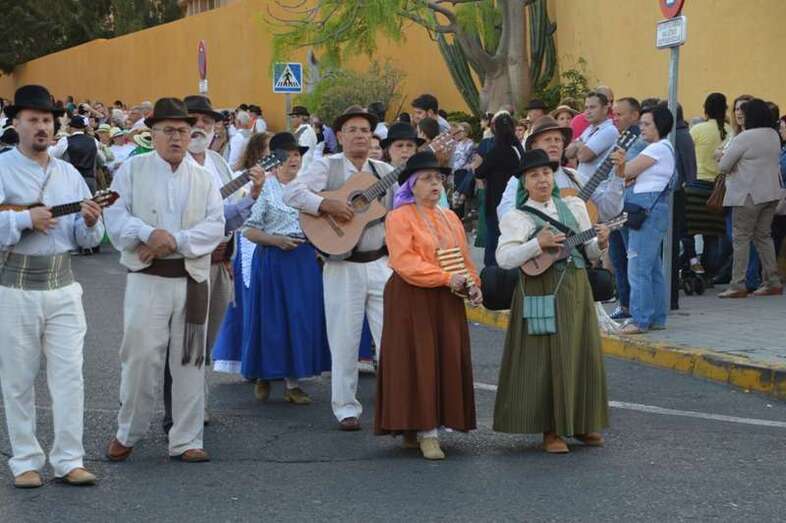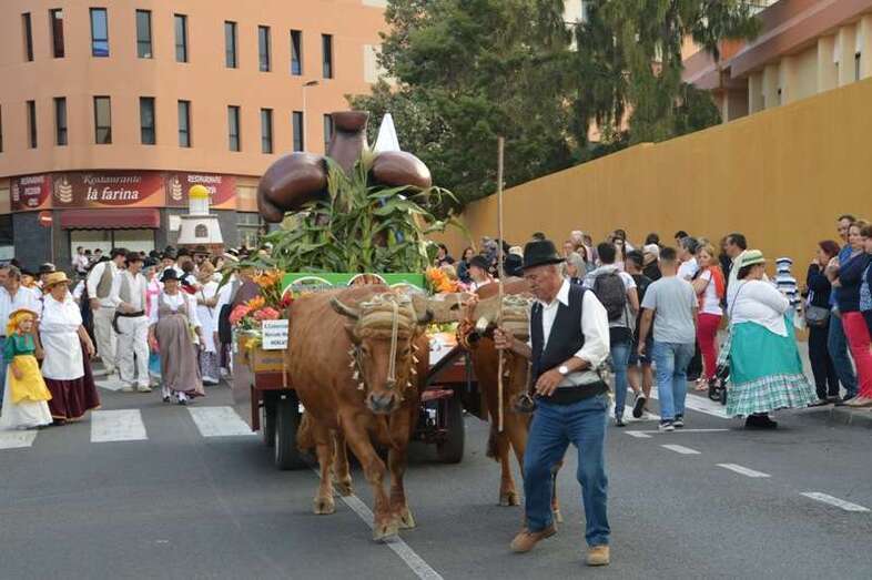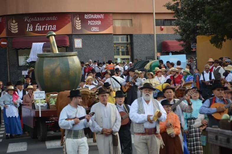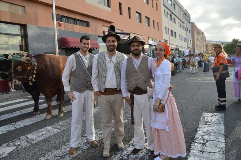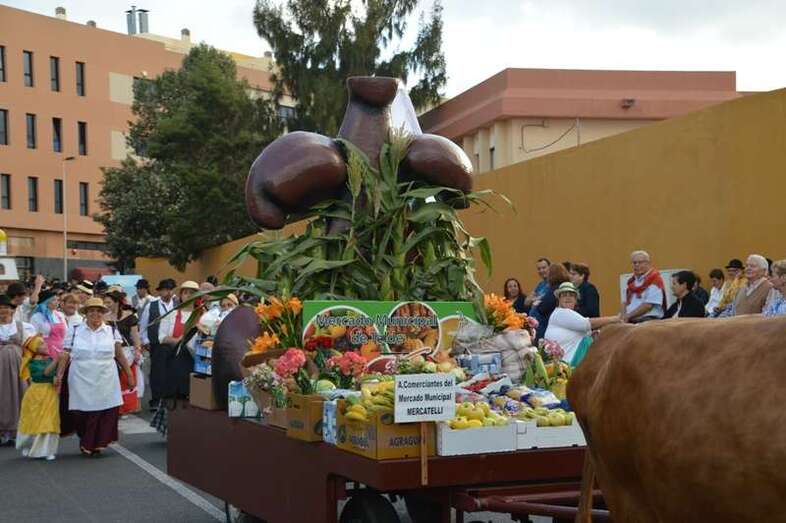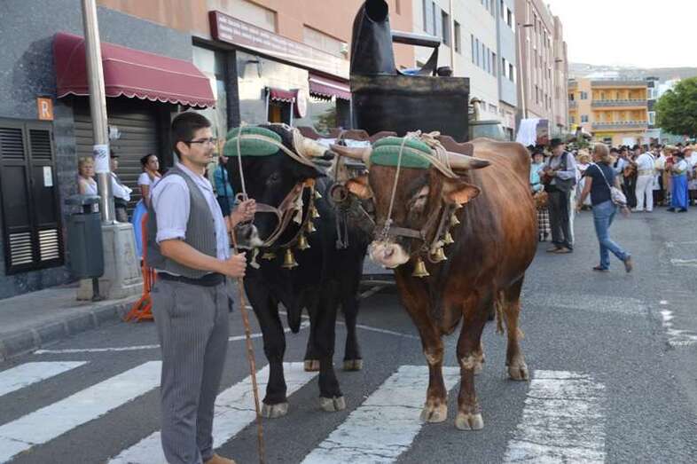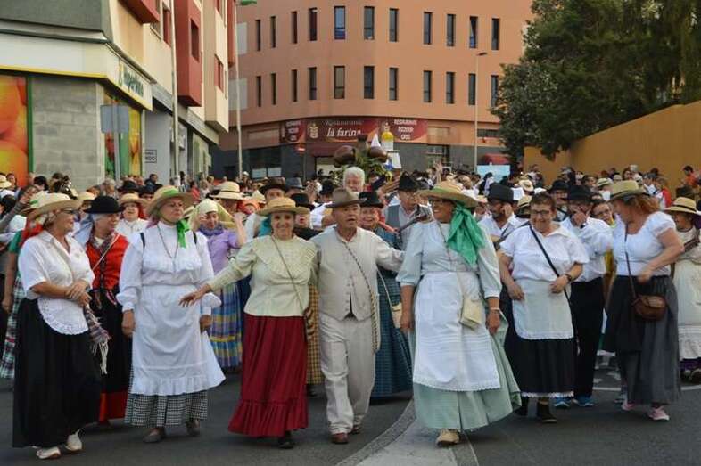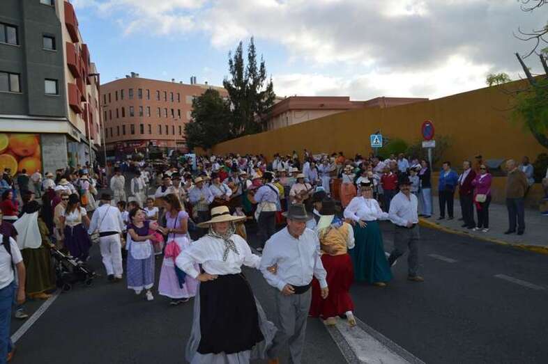 Telde.- La tradicional romería a San Juan Bautista llenó este sábado 18 de junio de alegría y bullicio las calles del casco del enclave fundacional de Telde. Nueve carretas y una veintena de grupos folclóricos participaron en la concurrida jarana, que terminó en la fachada principal de la Basílica con la ofrenda de alimentos a los pies del trono del santo. Cientos de ciudadanos salieron a su encuentro.