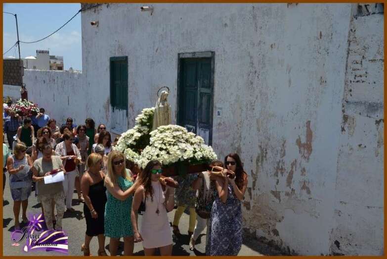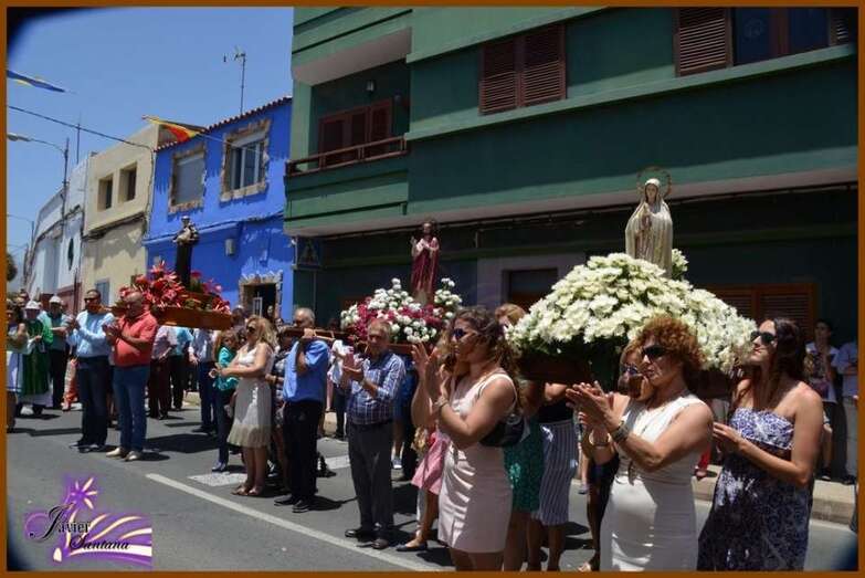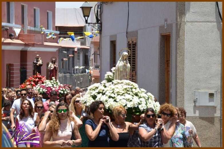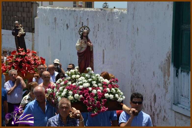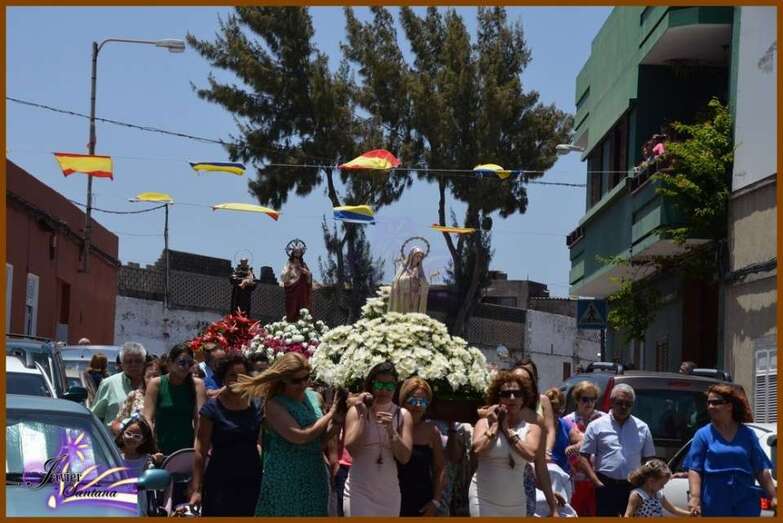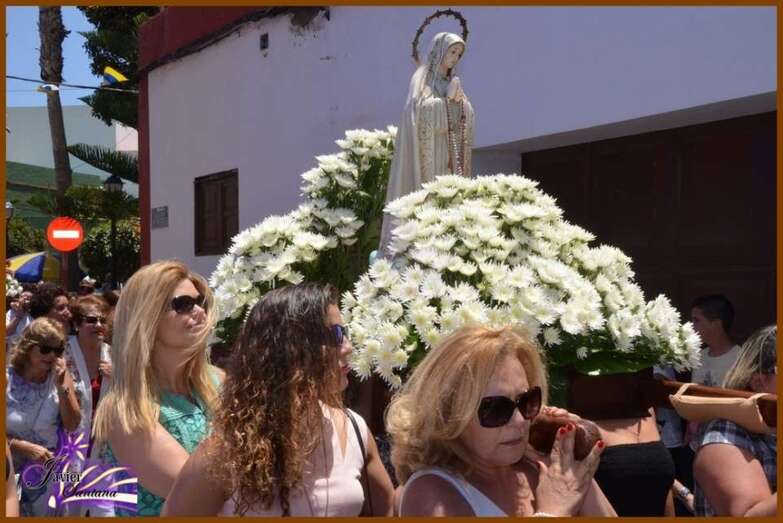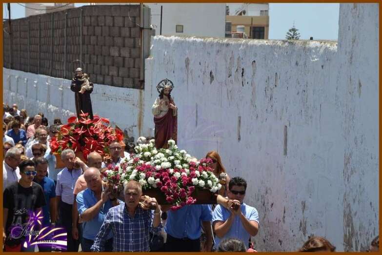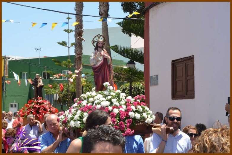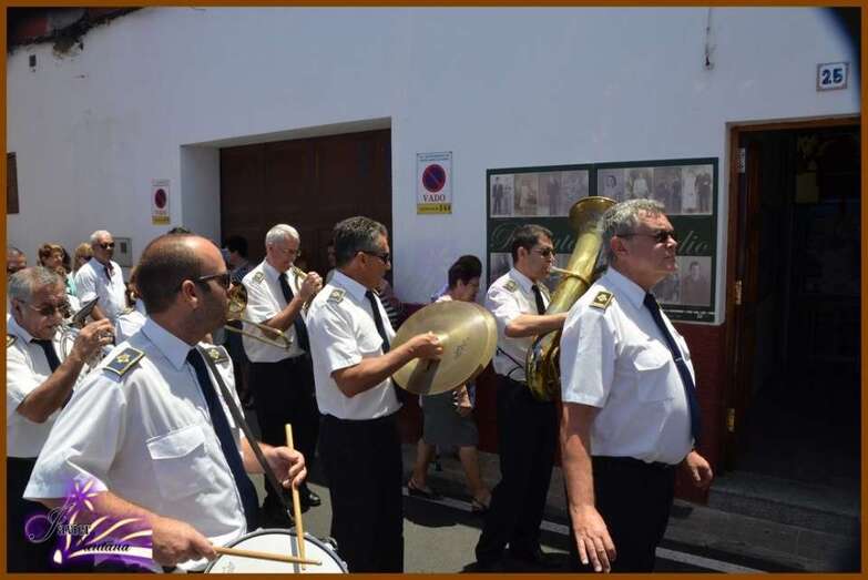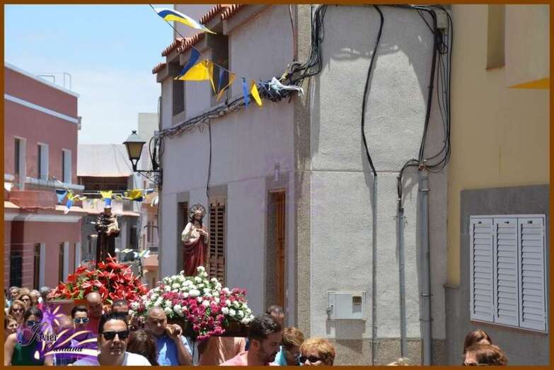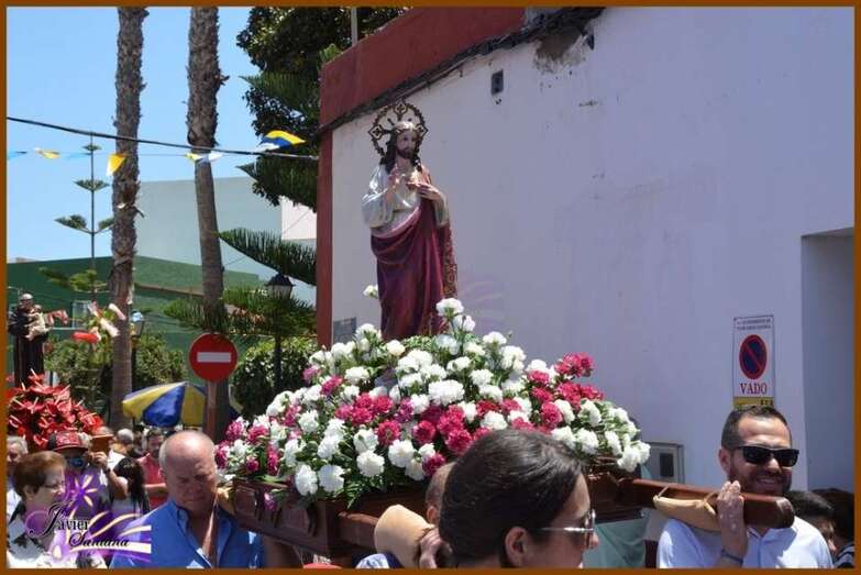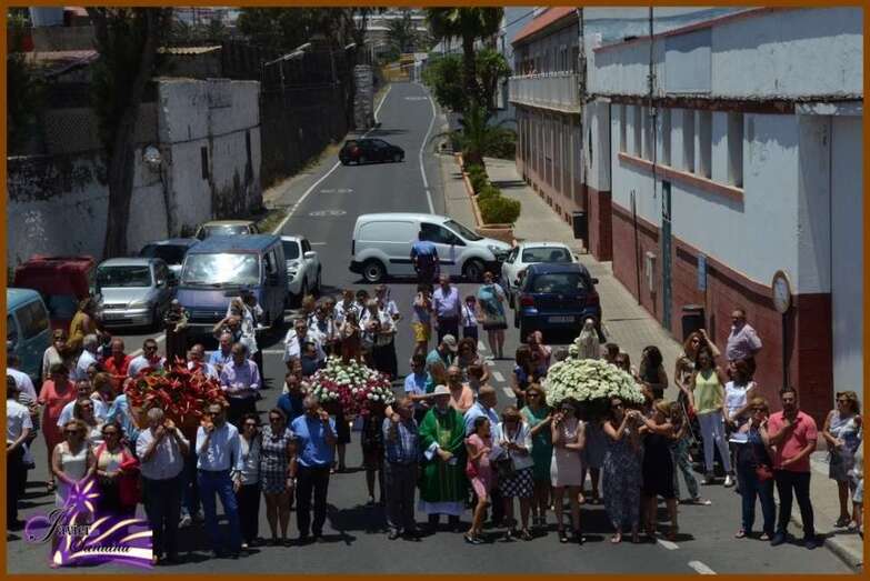 El párroco de la Basílica de Telde, José María Cabrera, fue el encargado de oficiar la eucaristía-ofrenda que se celebró en el recinto público del Sagrado Corazón de Jesús. Luego el desfile religioso hizo el recorrido de costumbre acompañado de la Banda Municipal de Música.