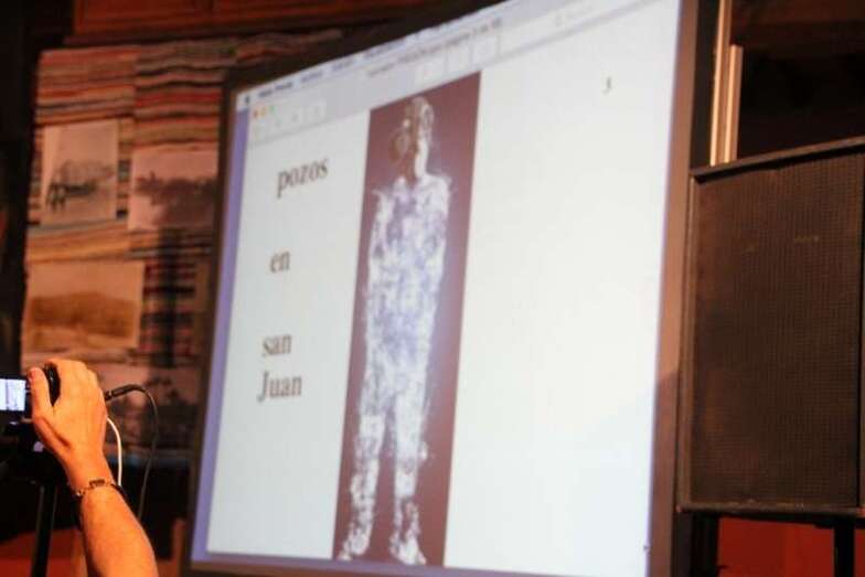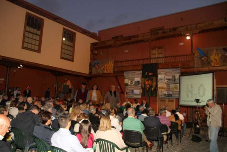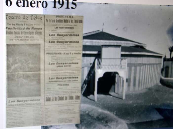 Fernando Ojeda, ingenioso, con buen humor y con ánimos de crear un ambiente diferente al de un pregón al uso, en su particular y bien documentada información técnica, literaria, gráfica, anecdótica, popular, muy didáctica, llena de historias sobre la cuestión hidráulica de aquellos años, de la que es especialista en la materia, abre su intervención animando al publico a identificar una de la primeras imágenes retrospectivas del Telde de los primeros años del pasado siglo XX, el Teatro de Telde, en una representación en la festividad del 6 de enero de 1915, según programa ¿dónde está ubicada la imagen?