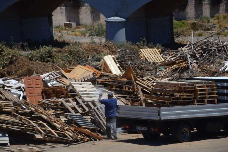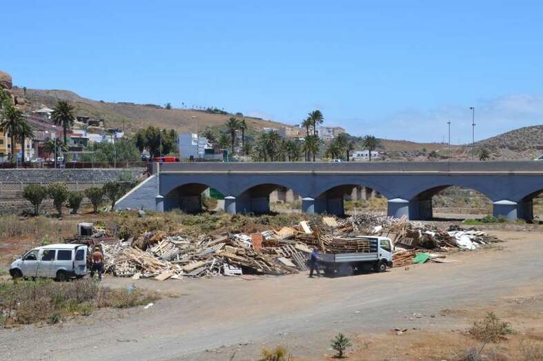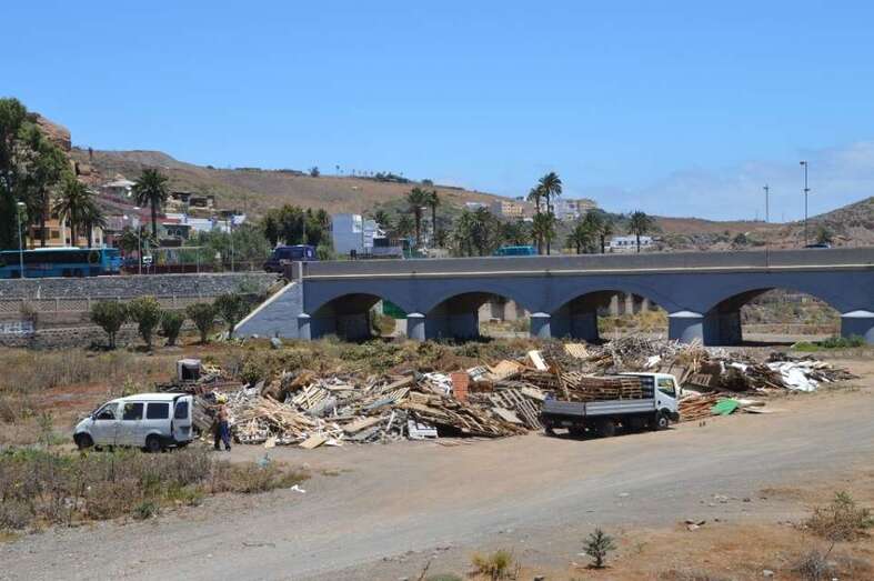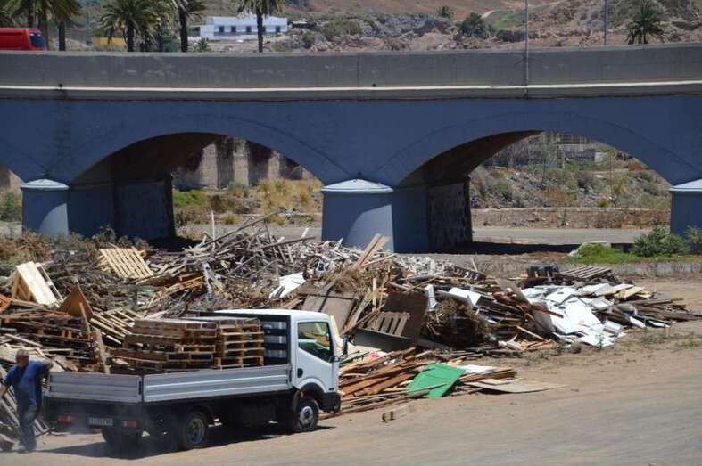 Telde.- El Barranco Real de Telde ha comenzado a recibir material sólido, especialmente palets de madera, que arderá a partir de las 23.00 horas del próximo jueves 23 de junio en la tradicional hoguera de la Noche de San Juan que cada año el Ayuntamiento enciende en el cauce público de esta red hidrográfica. TA avanza imágenes.