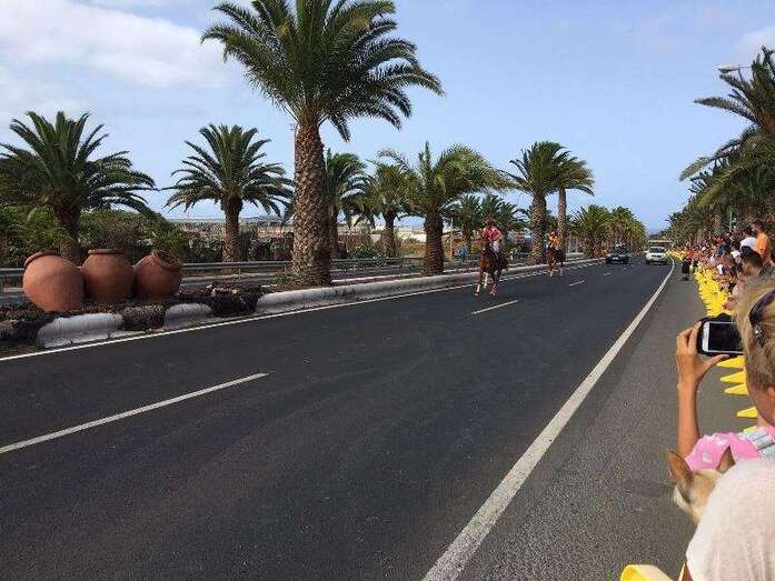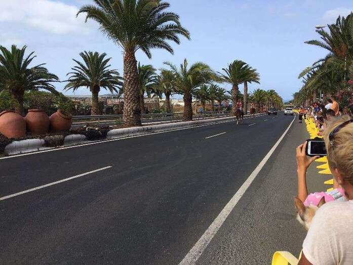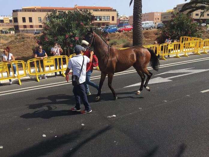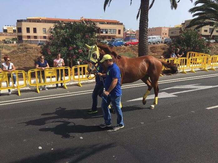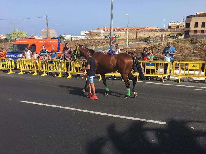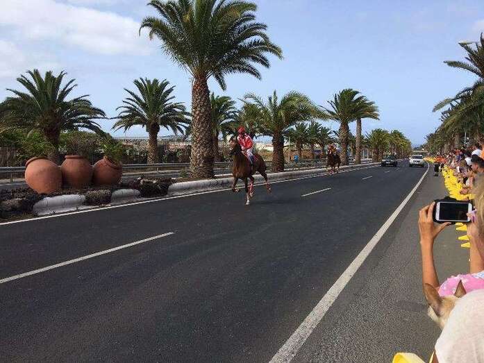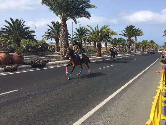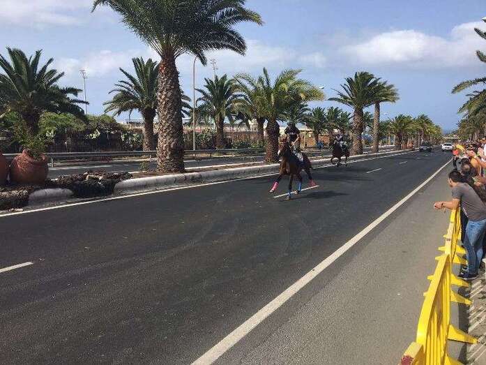 Telde.- Más de cuatro años después de que fueran prohibidas por el anterior gobierno, las carreras de caballos sobre asfalto volvieron este domingo a las calles de Telde. Más de 2.500 aficionados y vecinos del municipio se apostaron en los márgenes de la Avenida del Cabildo para contemplar este evento desarrollado, en el marco de las fiestas de San Juan Bautista 2016 y entre fuertes medidas de seguridad, en un tramo intermedio de la vía de 1,4 kilómetros, entre Las Remudas y El Hornillo. En total, se disputaron 10 lances con la participación de dos caballos en cada uno, sin incidencia alguna digna de reseñar.