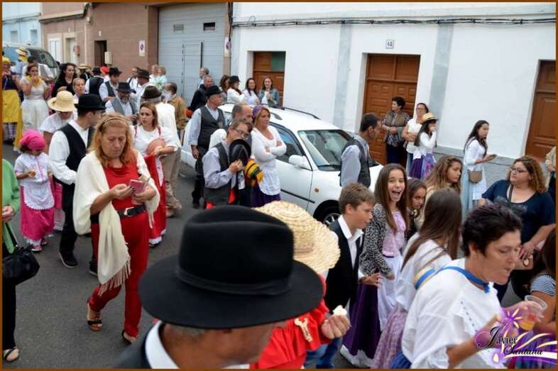 El desfile popular se puso en marcha poco después de las 19.00 horas en la explanada próxima al colegio público y discurrió por varias calles hasta llegar a la plaza pública, donde tuvo lugar la ofrenda a los pies de los tronos de los patronos. La fiesta continuó con una verbena y una exhibición de fuegos artificiales.