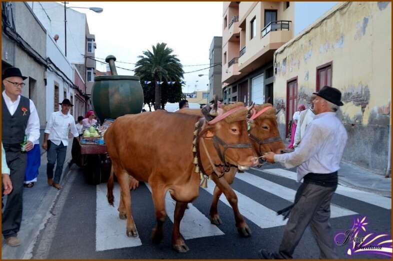 Telde.- El Ejido se echó este sábado a la calle para ofrendar a sus patronos San Pedro y la Virgen del Carmen con una participativa romería que contó con cuatro carretas tiradas por bueyes, tres aportadas por el Ayuntamiento y una por el CEIP Amelia Vega de Monzón. TA ofrece amplio reportaje gráfico.