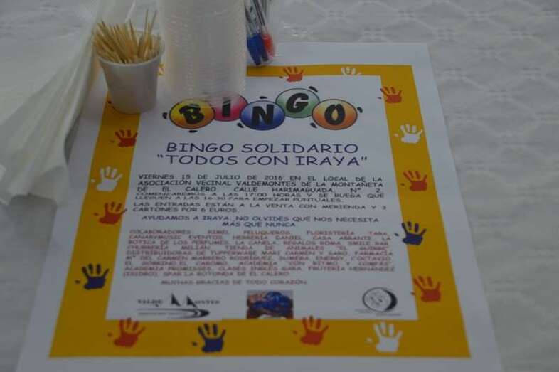 El bingo benéfico se desarrolló en el local social del colectivo ciudadano a partir de las 17.00 horas y los asistentes, que aportaron seis euros por tres cartones fueron agasajados con una merienda por la organización del evento con el que reunió fondos para que la niña pueda combatir enfermedad y mejorar su calidad de vida. El sábado 30 de julio habrá una gala artística, también en La Montañeta, con el mismo fin.