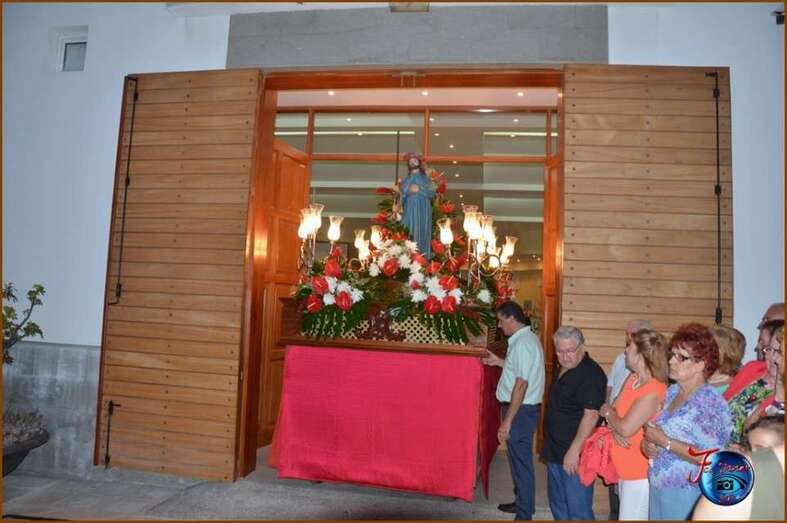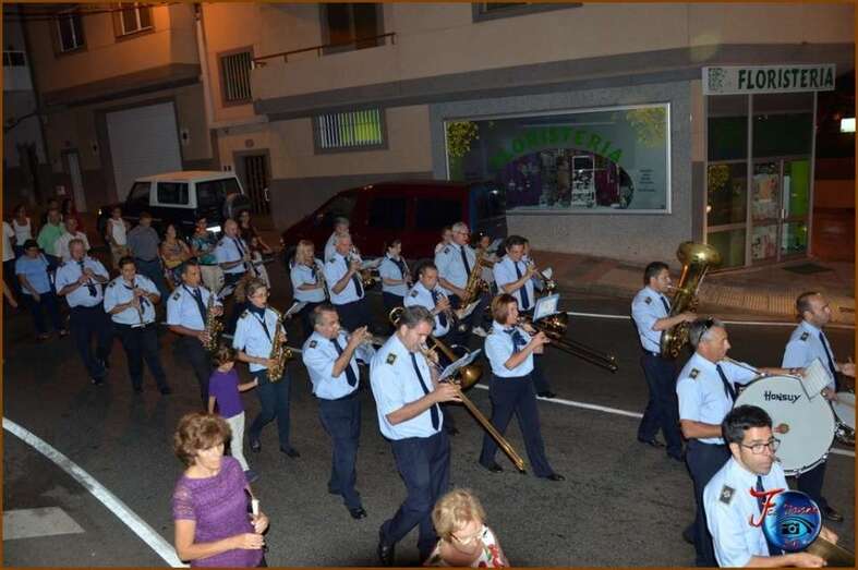 Tras la eucaristía, oficiada por el párroco de la zona los tronos de los patronos salieron a hombros de feligreses en su periplo por las principales calles de Lomo Cementerio, acompañados de la Banda Municipal de Música.