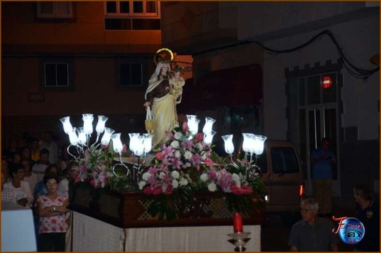 Telde.- La procesión religiosa de la Virgen del Carmen y Santiago Apóstol recorrió este lunes las calles del enclave poblacional de Lomo Cementerio, acompañada de decenas de fieles y autoridades municipales. TA ofrece reportaje gráfico.