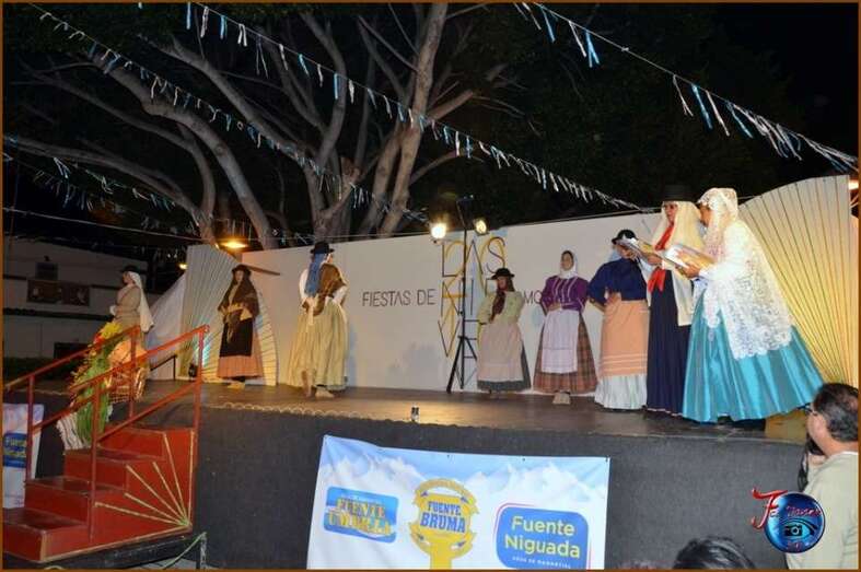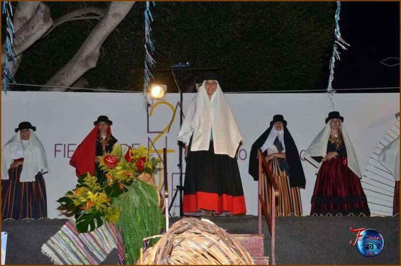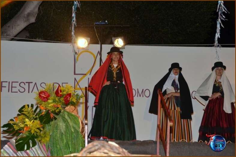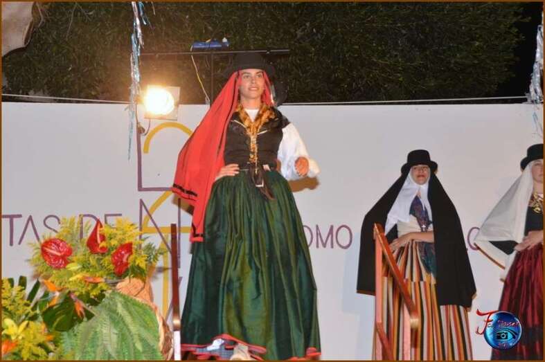Las ocho candidatas desfilaron con trajes típicos canarios cedidos por la artesana Josefa Bravo de Laguna.