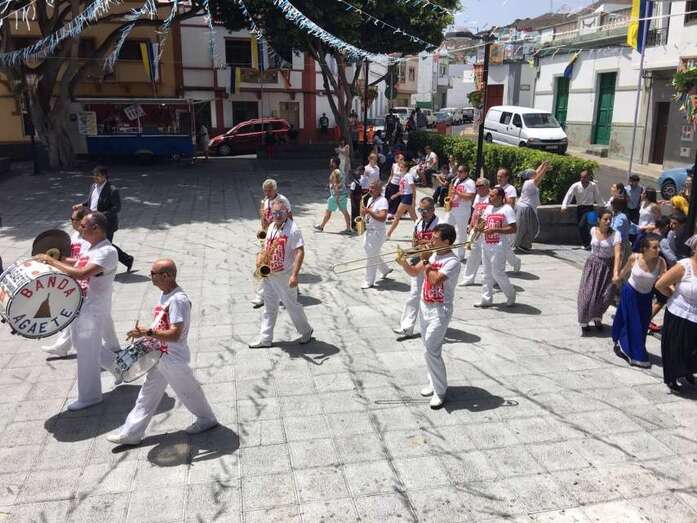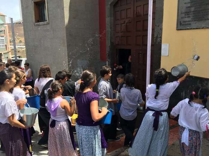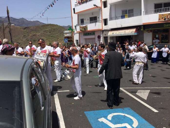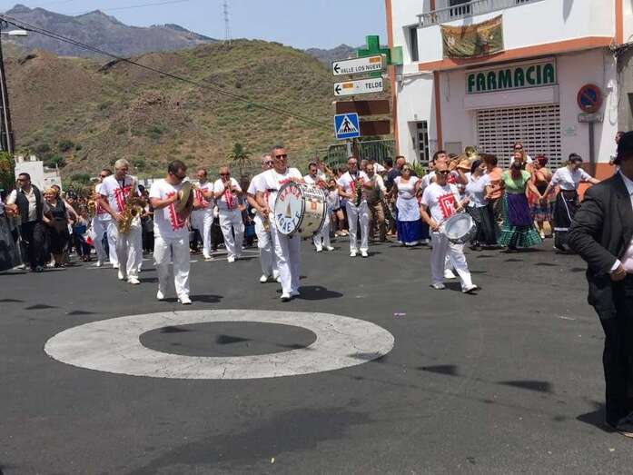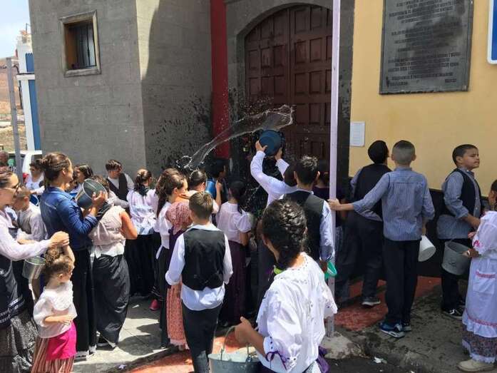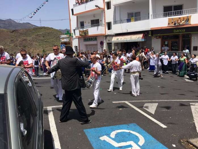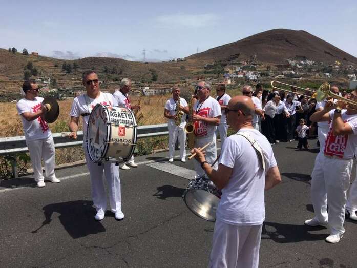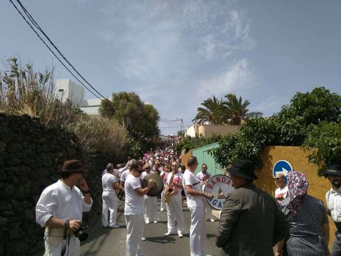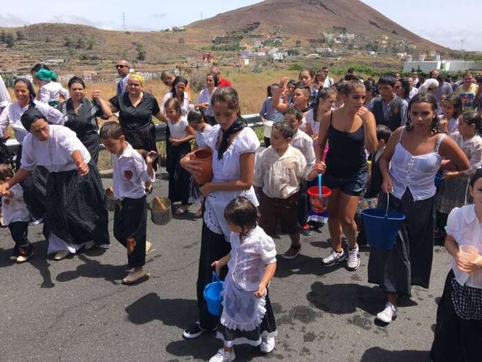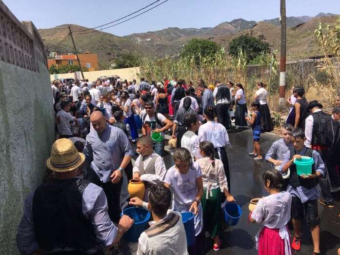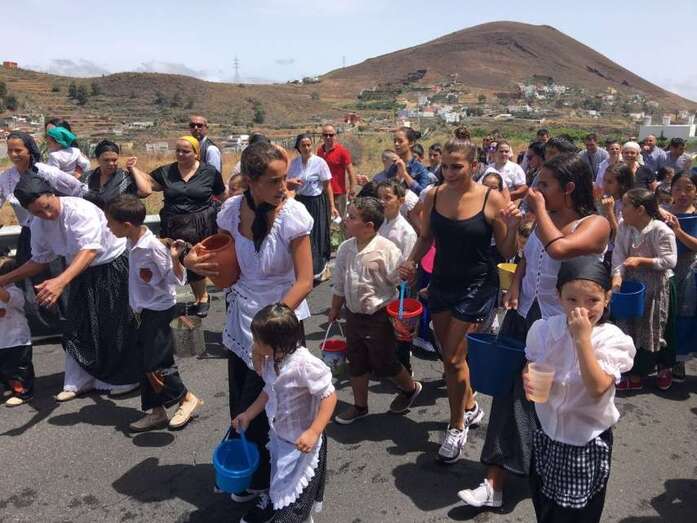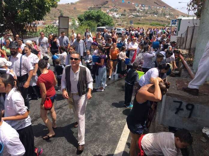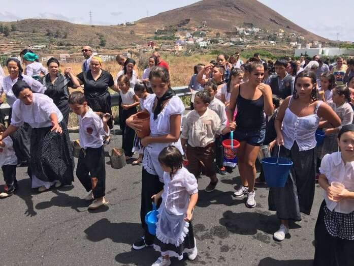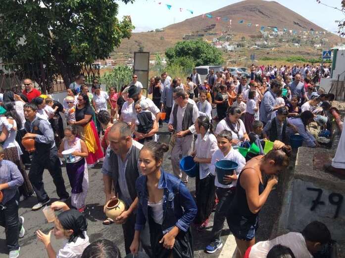 La organización decidió recuperar parte del que fue el trazado inicial de esta fiesta, allá por finales de los años 60. De tal forma que el recorrido salió a las 12 del mediodía de la plaza, bajó por la calle La Virgen, se metió por el camino Pico Gallo y volvió a la plaza por la carretera general de Lomo Magullo, la GC-131, para acabar tirando agua a la fachada del templo de Las Nieves y luego pasar a la plaza pública, donde la fiesta continuó durante más de una hora con un baile bajo un calor sofocante.