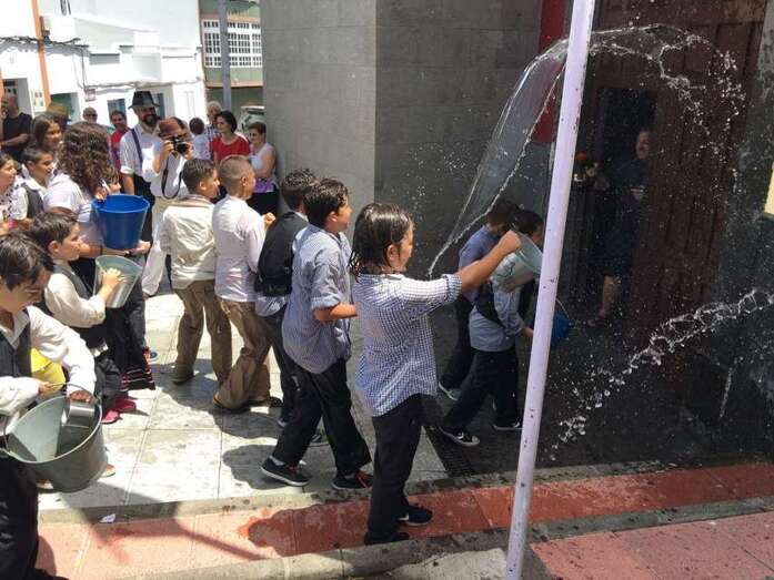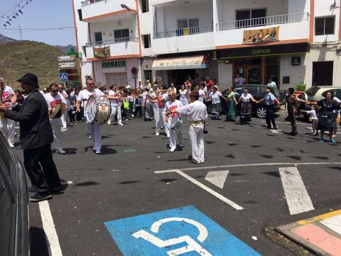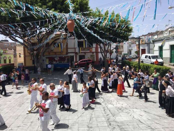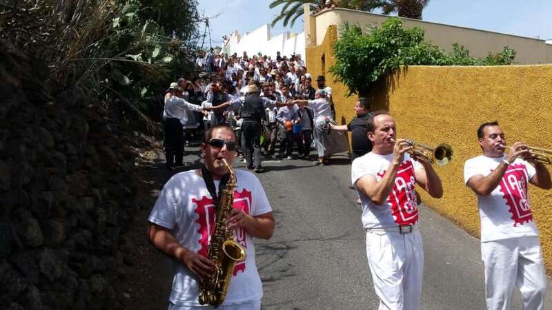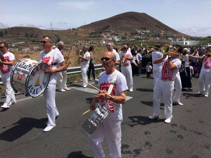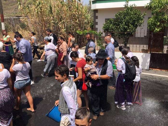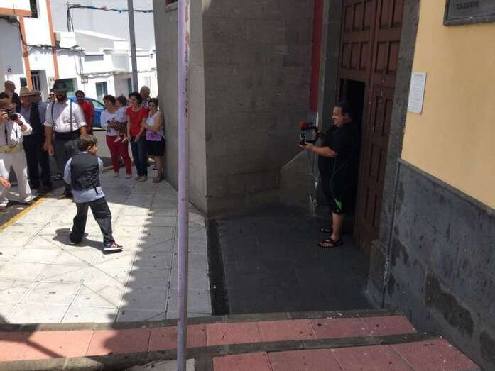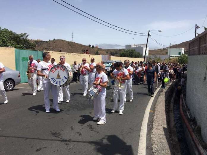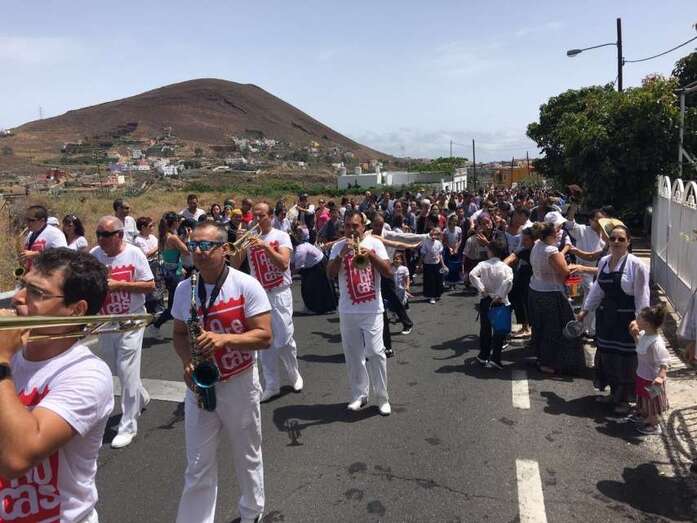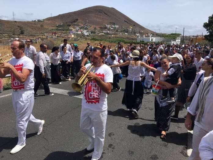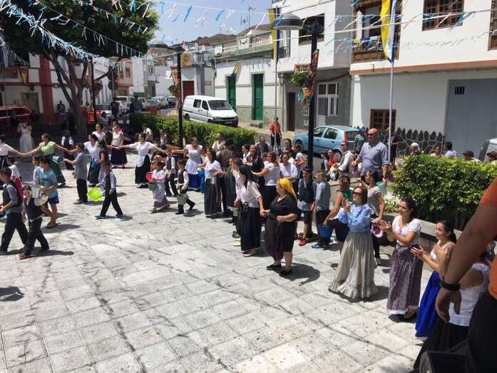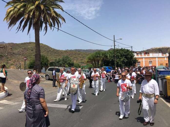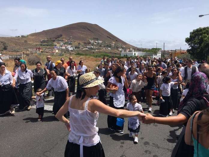 La organización decidió recuperar parte del que fue el trazado inicial de esta fiesta, allá por finales de los años 60. De tal forma que el recorrido salió a las 12 del mediodía de la plaza, bajó por la calle La Virgen, se metió por el camino Pico Gallo y volvió a la plaza por la carretera general de Lomo Magullo, la GC-131, para acabar tirando agua a la fachada del templo de Las Nieves y luego pasar a la plaza pública, donde la fiesta continuó durante más de una hora con un baile bajo un calor sofocante.