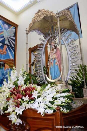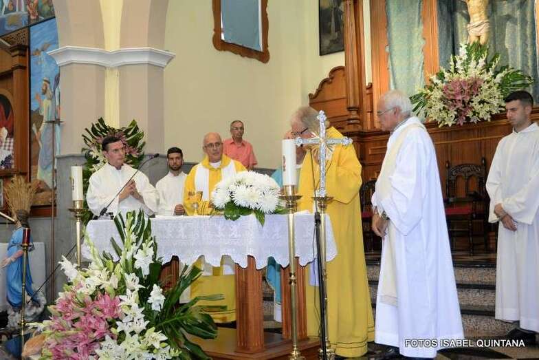 Telde.- El sofocante calor redujo este mediodía a la mínima expresión la procesión religiosa de la Virgen de las Nieves en Lomo Magullo. Las temperaturas próximas a los 40 grados obligaron a que, tras la misa oficiada en un abarrotado templo por Santiago Santana, párroco de Santiago de Tunte que ejerció su pastoral años atrás en Lomo Magullo, el desfile callejero del trono de la patrona y alcaldesa perpetua de Telde se circunscribiera a rodear la plaza del pueblo y a la suspensión del pase del ganado. TA ofrece dos amplios reportajes en el interior de la noticia.
