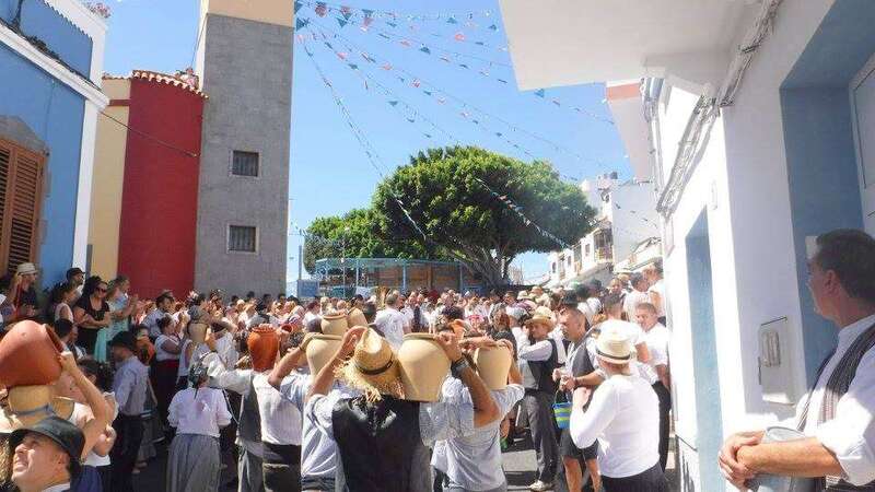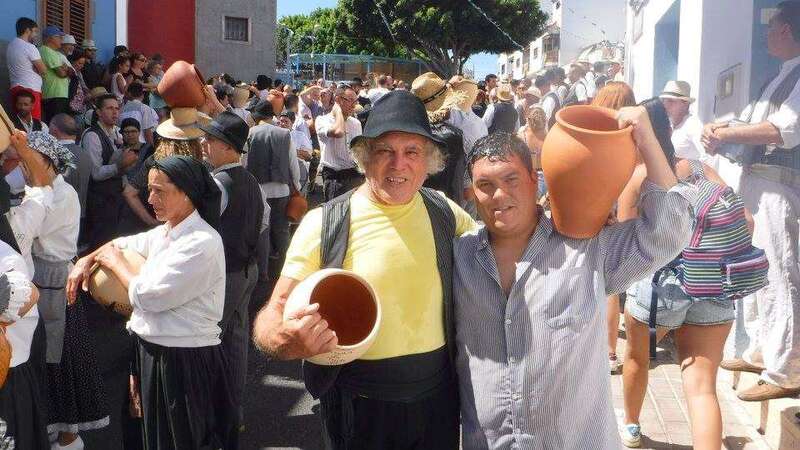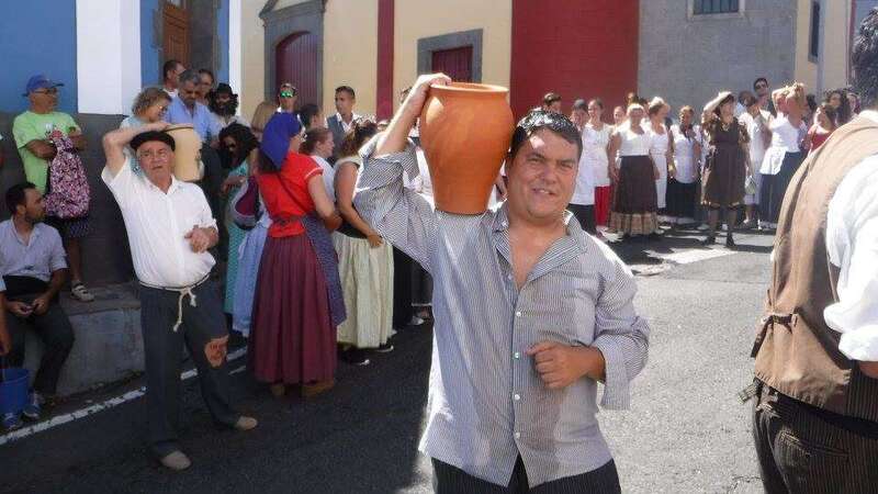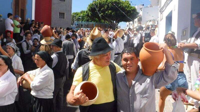 Esta conocida festividad teldense en la que abunda el agua está inspirada en un rito aborigen que pretendía paliar precisamente lo contrario, la escasez del líquido elemento. Las plegarías y ceremonias que realizaban los antiguos pobladores de Gran Canaria han sido sustituidas a día de hoy por baldes de agua con los empapar a cualquiera.