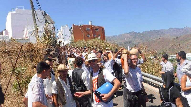 Menor masificación y un mayor regreso al espíritu originario. Y calor, mucho calor, aunque los termómetros hicieron el favor de quedar por debajo de los 40 grados. Así puede resumirse la edición de la Traída del Agua celebrada ayer en Lomo Magullo, con unos 1.500 asistentes, según los organizadores.
