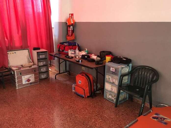 Los facultativos y varias ambulancias de soporte vital básico y la sanitarizada, se instalaron en el colegio Padre Collado, como es habitual. También el consultorio médico de Lomo Magullo permaneció abierto como soporte de apoyo a los médicos sobre el terreno, desde las nueve de la mañana a las seis de la tarde, con un médico y un enfermero. También hubo un puesto colocado en el local social, junto a la plaza del pueblo.