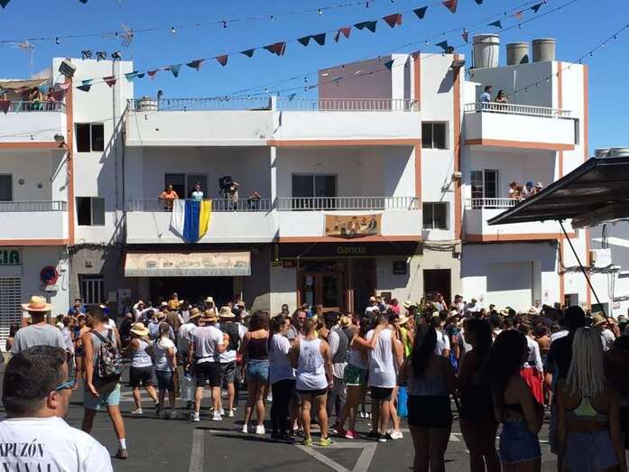 El cortejo del agua arrancó con unas 800 personas, en su mayoría vecinos de la zona, en el entorno de la plaza de Lomo Magullo, pero a medida que fue discurriendo por la calle de La Virgen y siguientes más gente se fue incorporando a la muchedumbre de jóvenes y adultos que con brincos y cánticos quisieron sumarse un año más al rito que se impuso hace más de cuarenta años y que desde entonces se viene repitiéndose en Lomo Magullo. Entre los asistentes se encontraban el concejal de Festejos y vecino del lugar, Juan Martel, y el párroco Fernando Báez (Padre Báez), ataviado con su habiual y llamativo jersey amarillo