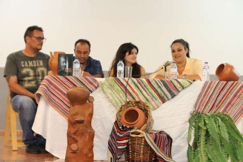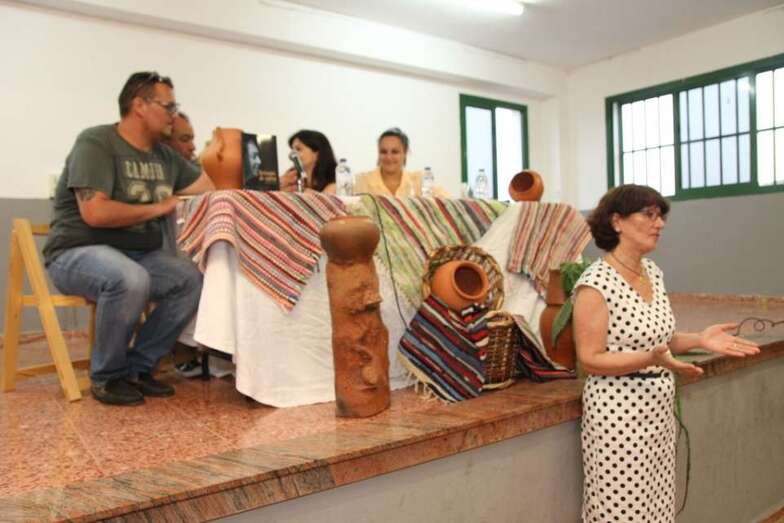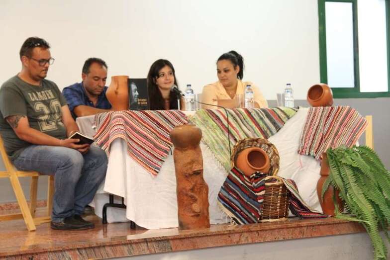 En la mesa de presentación el presidente del Patronato de Fiestas, Armando Quintana Sánchez, que abre el acto, Juan Domingo, humorista que da vida al personaje Maestro Florido, Gara Santana, periodista hija de Adolfo Santana, y Dolores Díaz representante de la editorial CanariaseBook. Editorial que hace una reseña personal del periodista: “Adolfo Santana nace en 1950 en Valsequillo (Gran Canaria). En 1972 viaja a Tenerife para estudiar Filosofía y Letras en la Universidad de La Laguna. A los pocos años, ya estaba haciendo sus primeras crónicas en el hoy desaparecido Diario de Las Palmas.