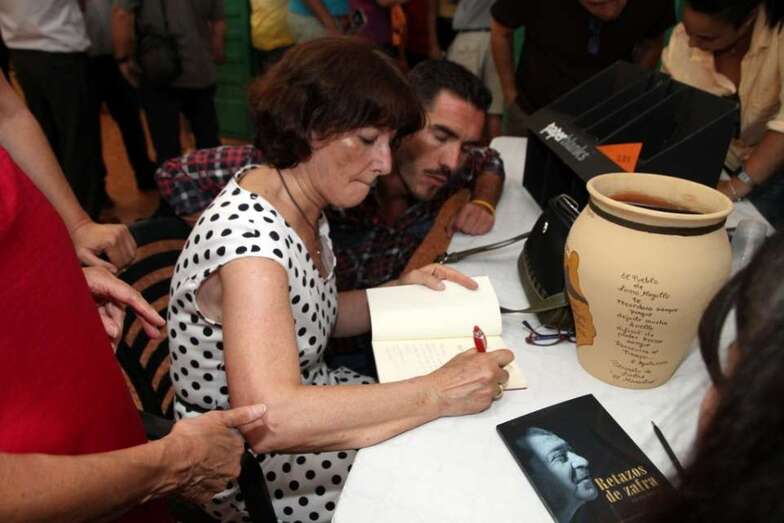 Con el más emocionado agradecimiento al público presente en este acto, Nieves Suárez agradeció en nombre de la familia y en el mejor de los recuerdos dedicados a la memoria de un hombre, Adolfo Santana, que dejó una huella profunda de sentimientos, profesionalidad y devoción por su tierra, mirando atrás nunca olvidó sus principios, y lo plasmó en sus numerosos artículos periodísticos y otros medios de comunicación, esta tarde en su libro, Retazos de zafra, para testimonio de los que aún debemos tomar ejemplo de que nunca debemos olvidar la senda recorrida porque quizás por ella tenemos que regresar un día.