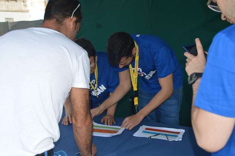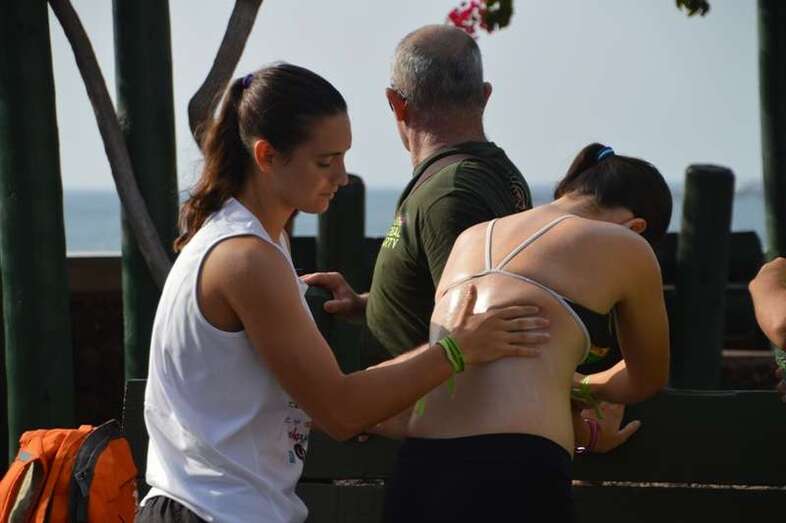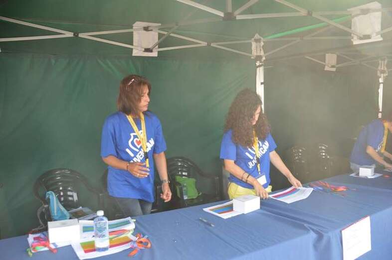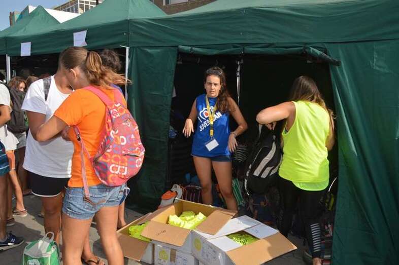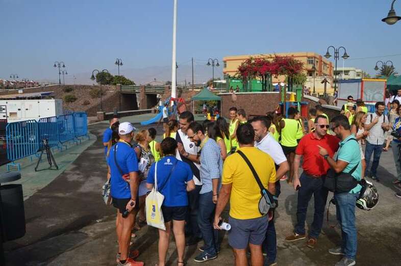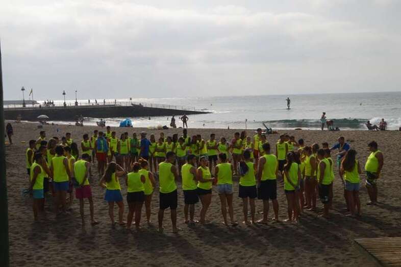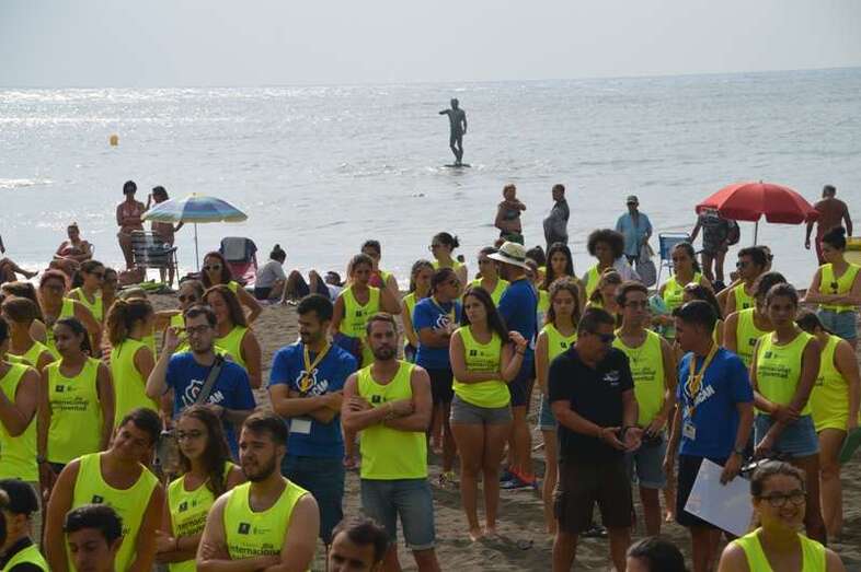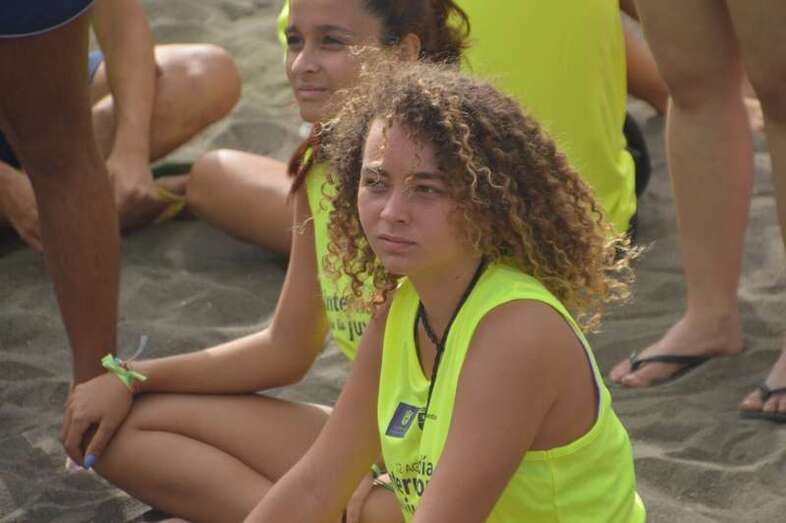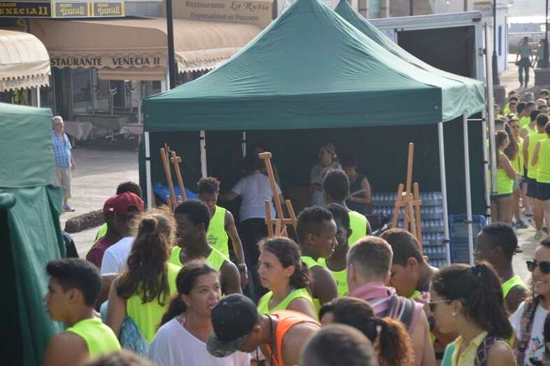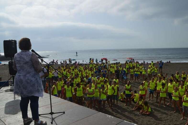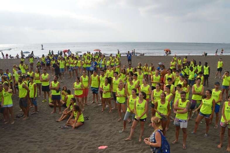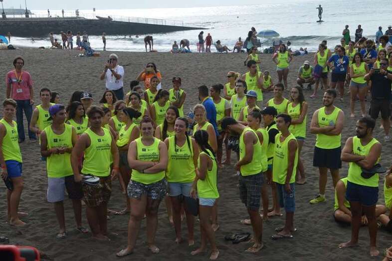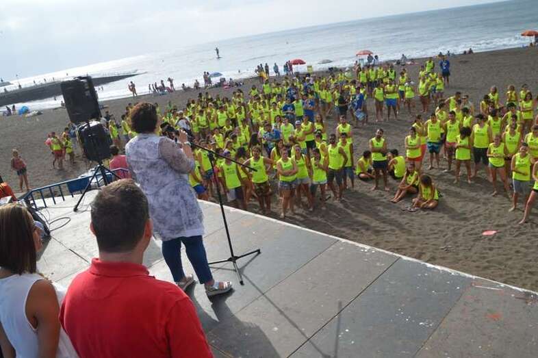 Después del acto protocolario de inauguración, con unas breves palabras de López y Montero, los jóvenes desentumecieron sus músculos con una alegre sesión de zumba y luego pasaron en seis grupos a participar en las diferentes actividades repartidas por toda la playa, tiñendo de amarillo limón, el color de las camisetas que repartió la organización, el arenal de Melenara. En el extremo sur de la cala, junto al bosquete de pinos marinos se llevó a cabo al filo de las 10.35 horas una plantación simbólica de cuatro árboles, acto en el que intervinieron un grupo de jóvenes y los políticos