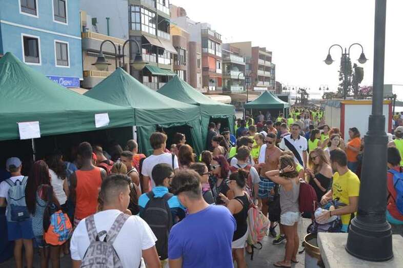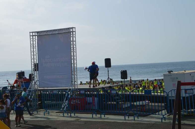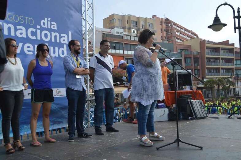 Telde.- Neptuno no daba crédito esta mañana al ver tantos jóvenes en su popular playa de Melenara. No atinaba a entender a qué se debía este bullicio juvenil repartido por la arena, avenida y muelle de esta cala teldense. Salió de su asombro cuando escuchó por los altavoces a la alcaldesa accidental de Telde, Celeste López, y al consejero insular Miguel Montero que el montaje tenía que ver con las actividades del Día Mundial de la Juventud, que congregó en esta playa a unos 500 jóvenes de casi todos los municipios de la Isla. TA avanza reportaje gráfico.