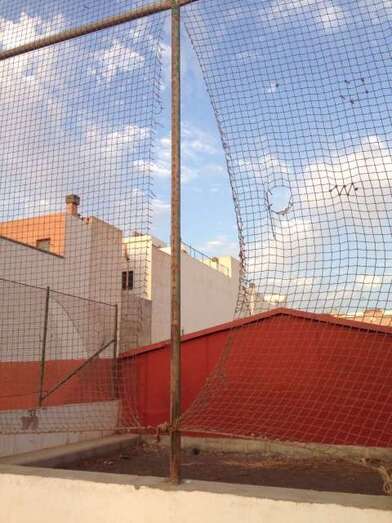 Cuando esto ocurre, los balones caen a un solar contiguo, una cancha de petanca abandonada, y los chicos se ven en la necesidad de saltar la valla para ir a buscarlos con el consiguiente peligro.