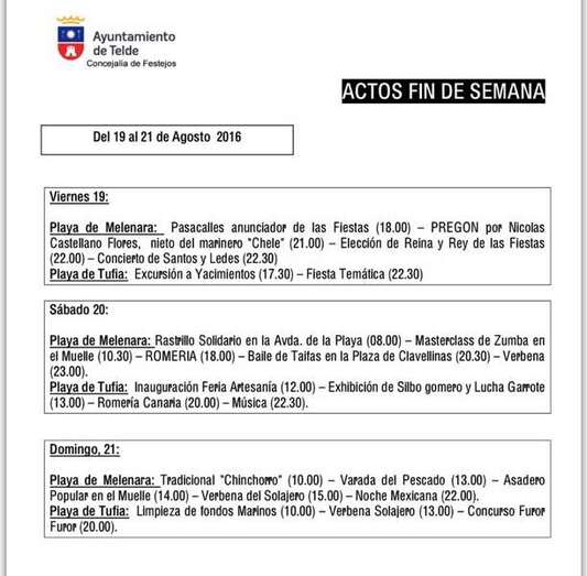 Telde.- El estío es sin duda sinónimo de jarana en los barrios de Telde, especialmente en aquellos radicados en la costa. Y dos de los puntos que precisamente este fin de semana honran a sus patronos con fiestas populares son los núcleos marineros de Melenara y Tufia. TA detalla sus calendarios festivos para los próximos días.