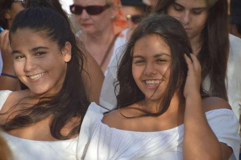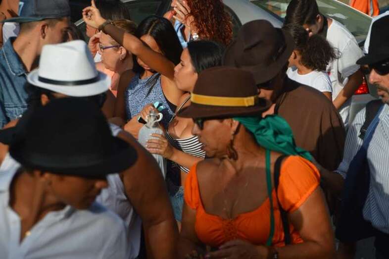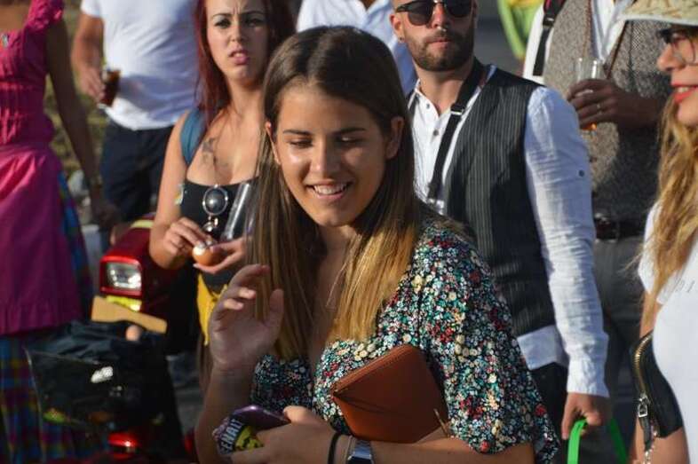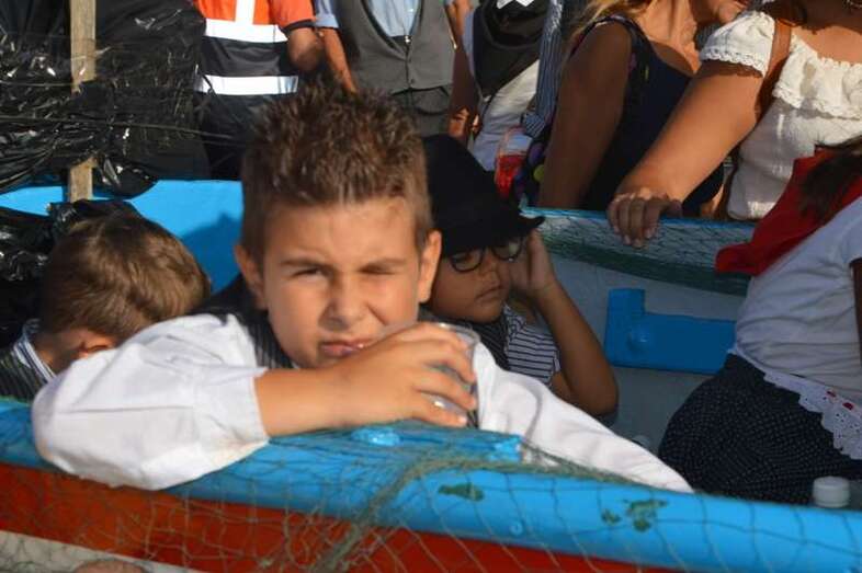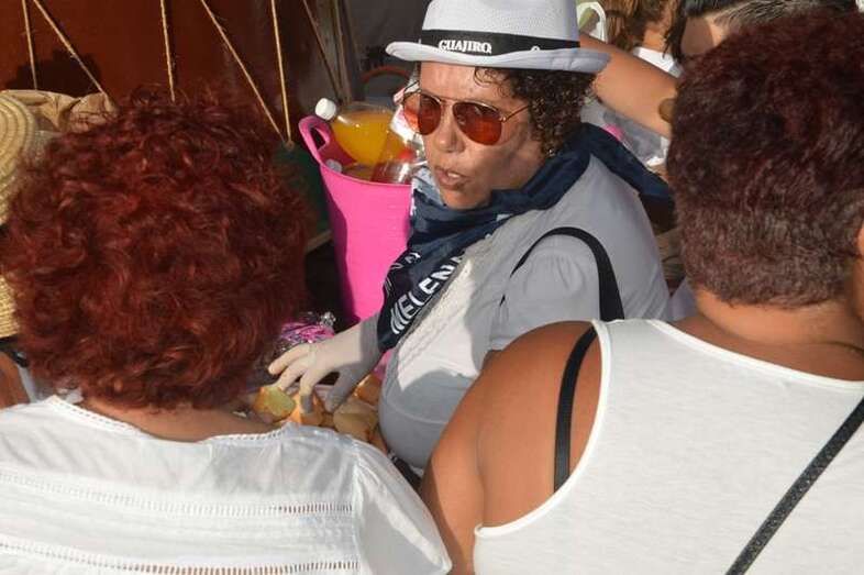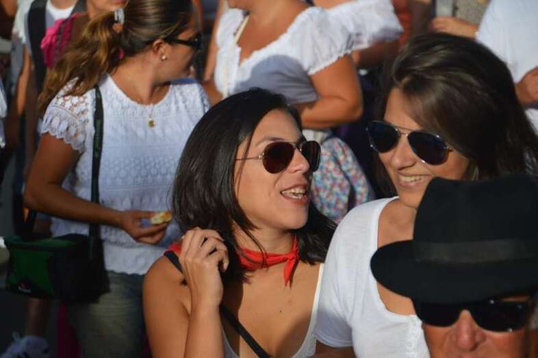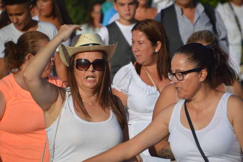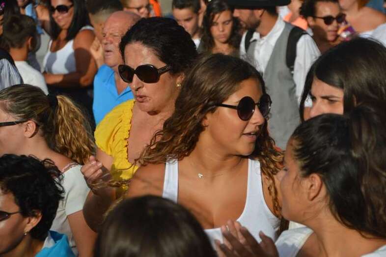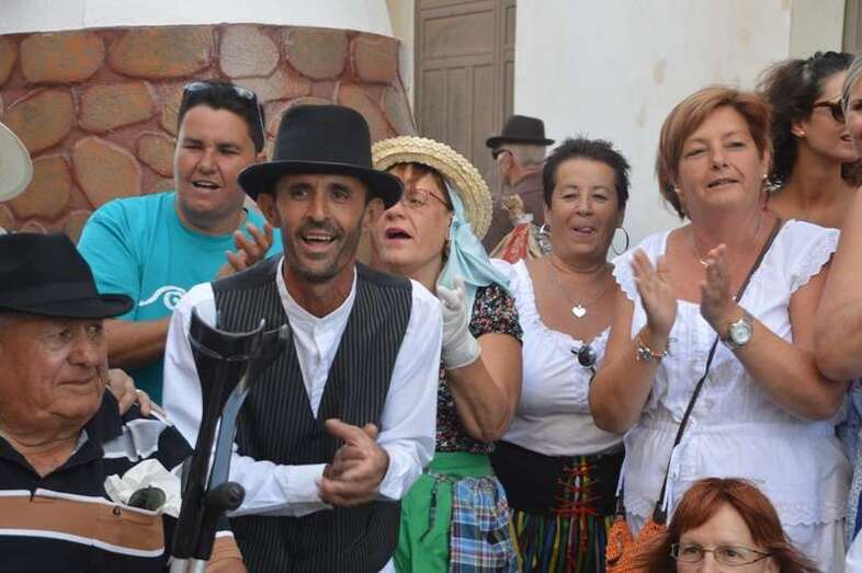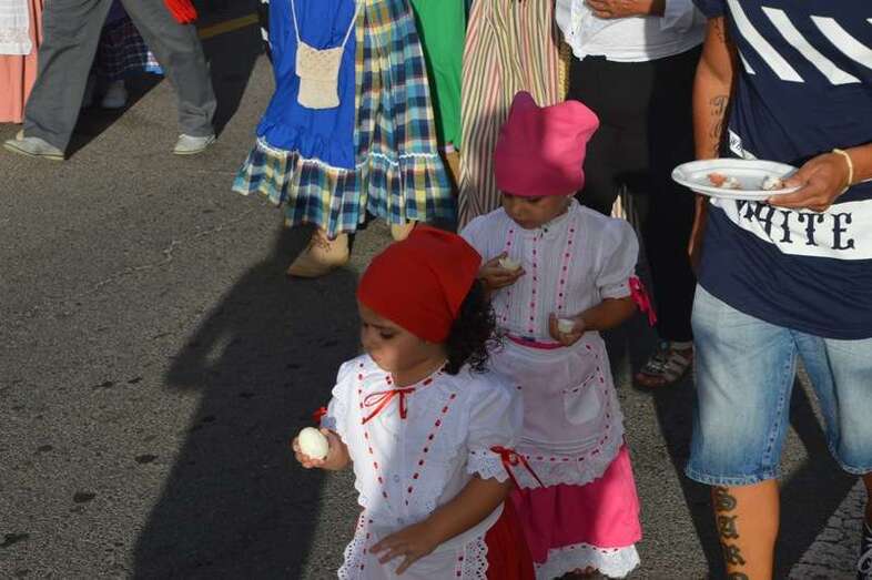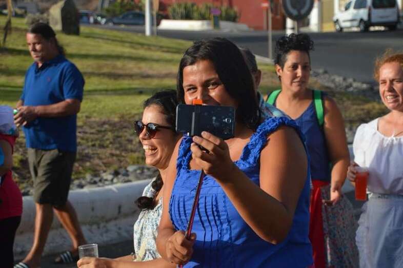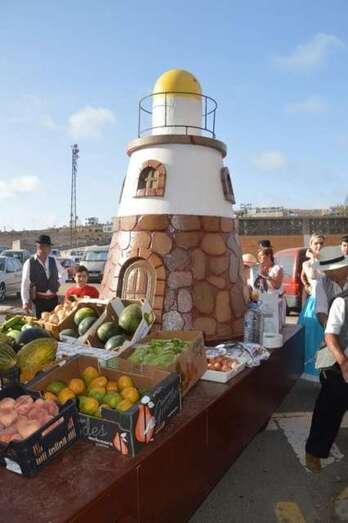 El desfile popular se puso en marcha a las 18.45 horas en el campo de fútbol y finalizaría hora y media después en la plaza de Clavellinas, donde se llevaríá a efecto la ofrenda a los patronos con productos de la tierra y un baile de cuerdas. Este año se acortó un poco el periplo y así al llegar a la rotonda que regula el tráfico de las calles de Américo Vespucio y La Niña, a la altura de Salinetas, la comitiva enfiló por esta última vía en dirección hacia el templo de Clavellinas