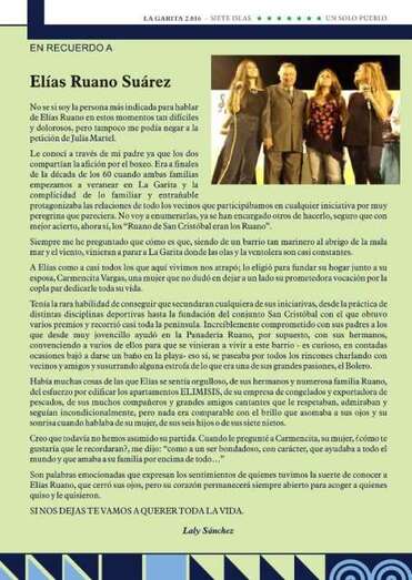 El homenaje al cantante y vecino Elías Ruano será, tal y como adelantó TELDEACTUALIDAD, el evento central de la jornada del 9 de septiembre. Consistirá en el descubrimiento de una placa conmemorativa en un monolito colocado en un parterre verde emplazado entre las calles de Margarita y Fresno, a las 20.00 horas. El acto proseguirá en la iglesia, donde se proyectará un video sobre Elías Ruano comentado por los vecinos Laly Sanchez y Juan Casanova. Después, en la plaza, un grupo de artistas rendirá tributo con su música al recordado vecino.