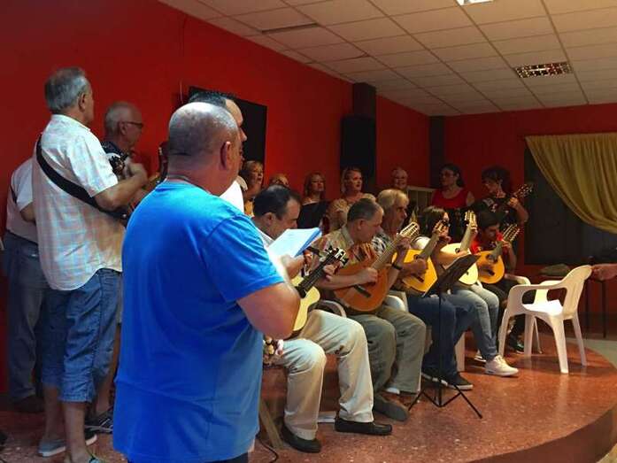 Foto de familia de los componentes de Tajea y Torna con el edil Juan Martel anoche durante un ensayo (Foto TA) Foto de familia de los componentes de Tajea y Torna con el edil Juan Martel anoche durante un ensayo (Foto TA)