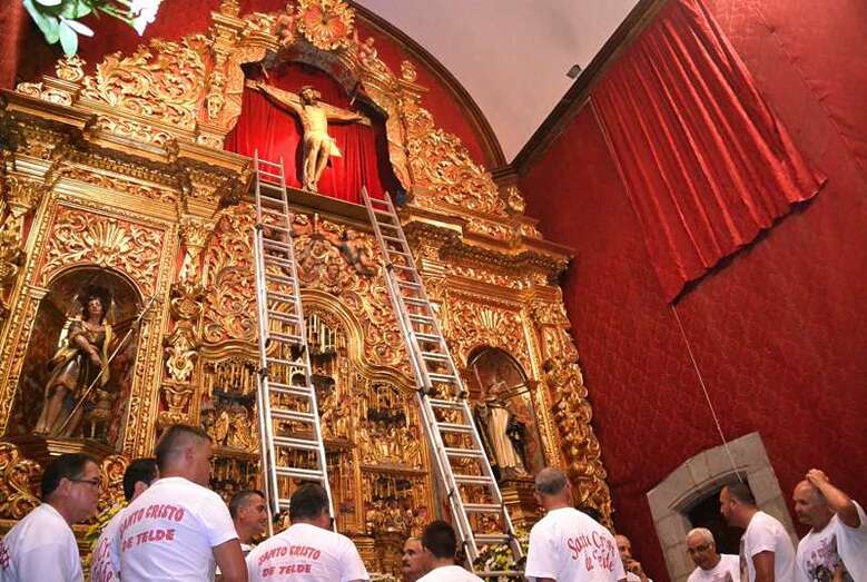 La del 12 de septiembre es una fecha que sin duda está marcada en rojo para los miles de teldenses y de grancanarios que cada año peregrinan en esta jornada al templo matriz de la ciudad para acercarse al Santo Cristo de Telde y presenciar su ceremonia de bajada para presidir unas fiestas en su honor que comenzaron ayer domingo y que se prolongarán