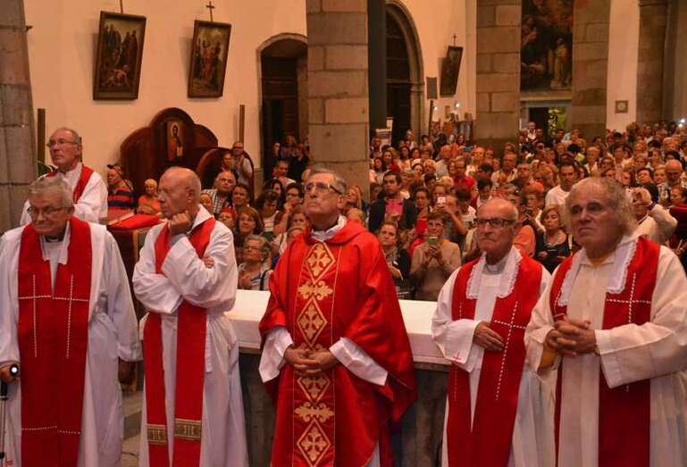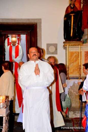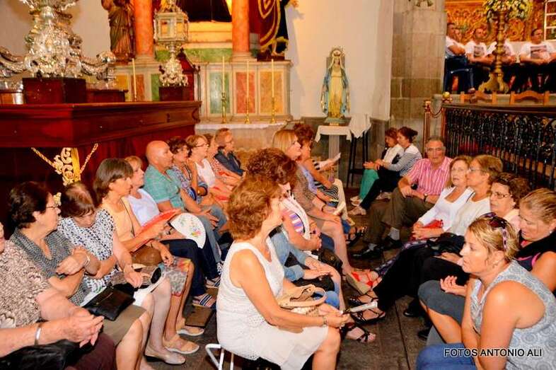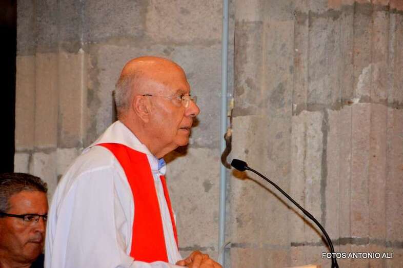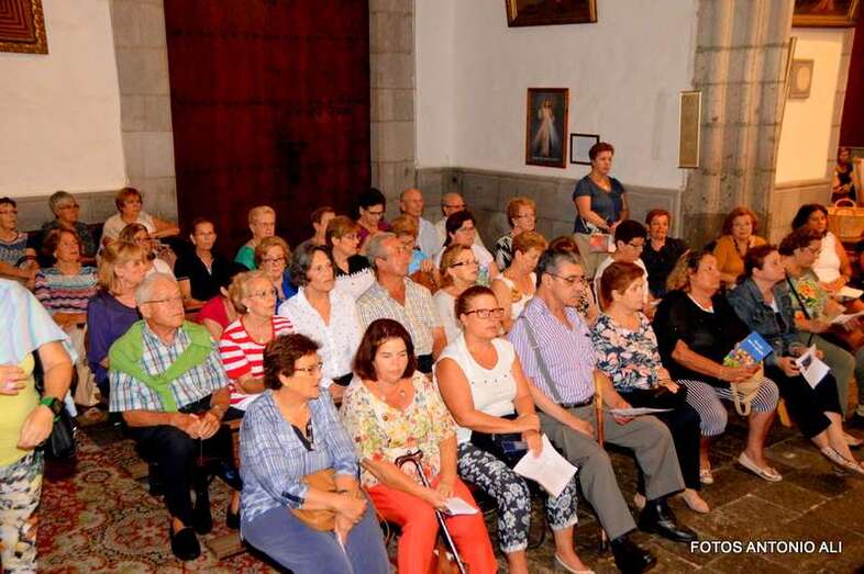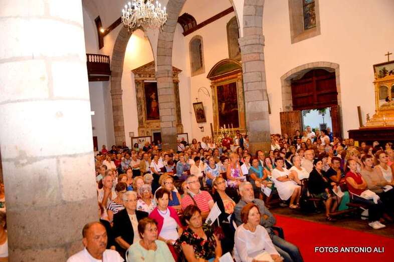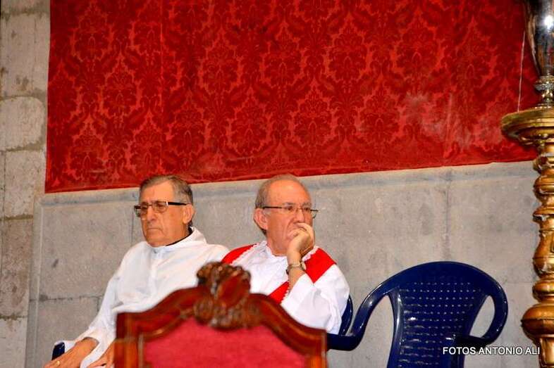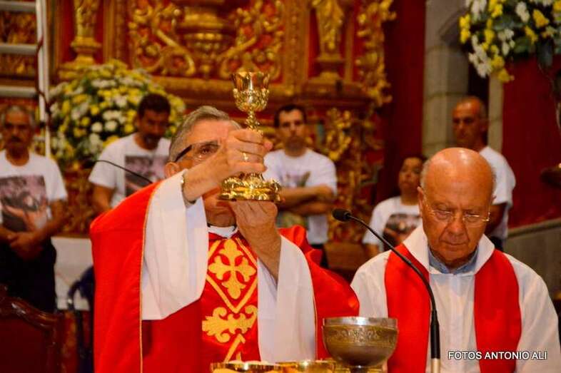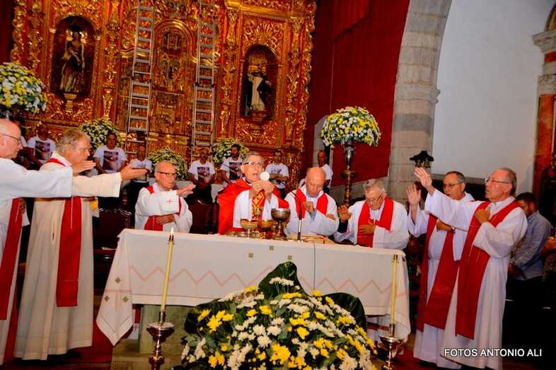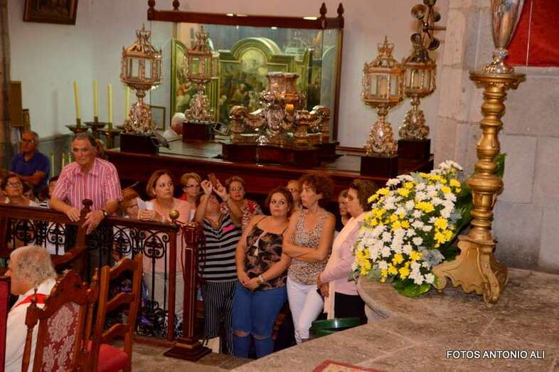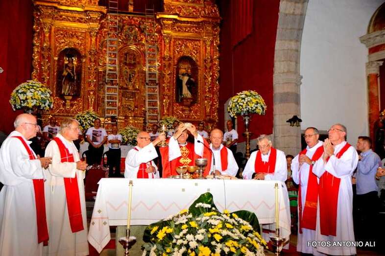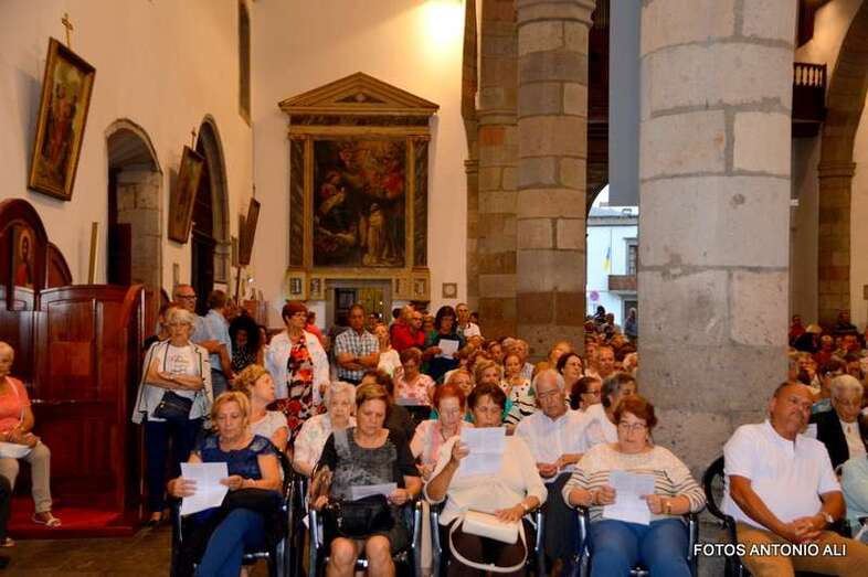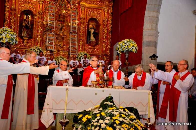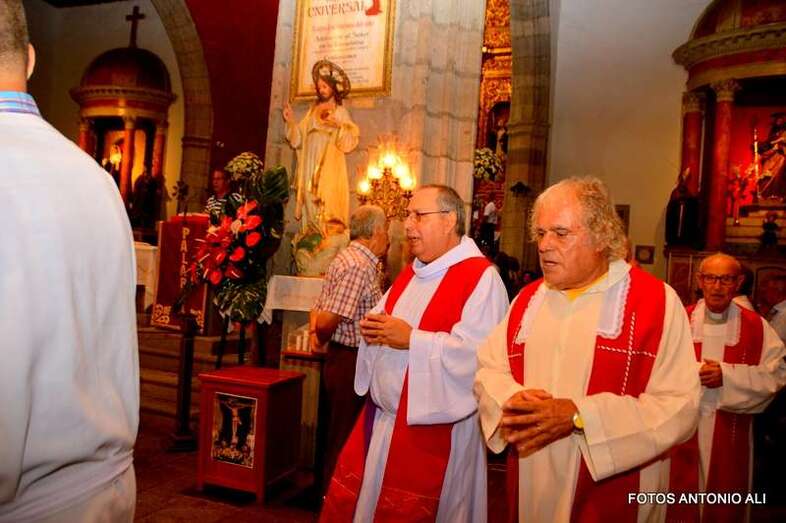 La bajada de la efigie, una tradición que se repite anualmente de manera ininterrumpidamente desde 1965, volvió a consumarse este tarde-noche a los pocos minutos de finalizar una eucaristía que presidió el reverendo Nicolás Monche López, canónigo de la Santa Iglesia Catedral de Santa Ana, junto a cerca de una decena de sacerdotes, entre ellos el párroco Jose María Cabrera y el que también fuera vicario y cura de esta Basílica, Francisco González.