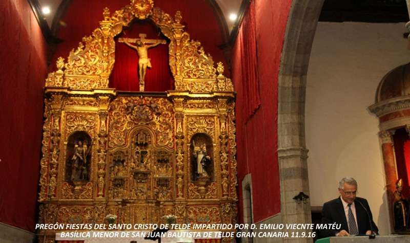 Según reza el programa de los actos religiosos dedicados a la tradicional Bajada de la imagen del Santo Cristo de Telde 2016, cuatro fechas principales en estos doce días que conmemoran esta fervorosa y siempre recordada tradición religiosa teldense que las gentes devotas locales y forasteras, venidas de otros lugares del archipiélago celebran cada año: el domingo 11 de septiembre el Pregón que este año impartió el teólogo, psicólogo, humanista, compositor de música religiosa y director de la Fundación Canaria Yrichen, don Emilio Vicente Matéu.
