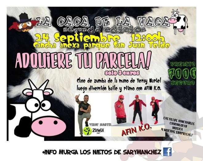 Desde las 12 del mediodía se sucedieron numerosas actividades en el magno recinto verde. Castillos hinchables, chiringuitos, clases de zumba con Yeray Martel, música con dj's y la actuación del grupo Afín K.O. formaron parte de un programa cuyo plato estelar fue la segunda edición del concurso de la Caca de la Vaca. La esperada deposición de la res en alguna de las parcelas que se pusieron a la venta por sólo tres euros. El ganador se embolsó casi 700 euros