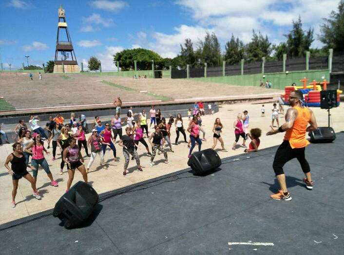Clase de zumba en el auditorio del parque urbano (Foto TA) Clase de zumba en el auditorio del parque urbano (Foto TA)