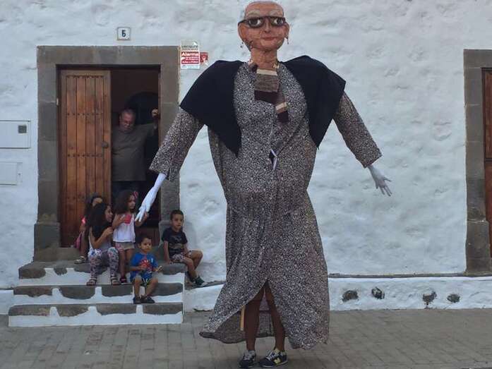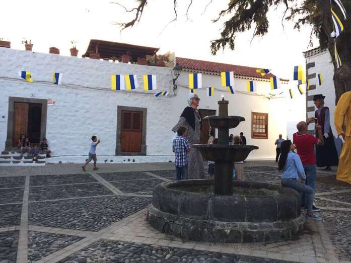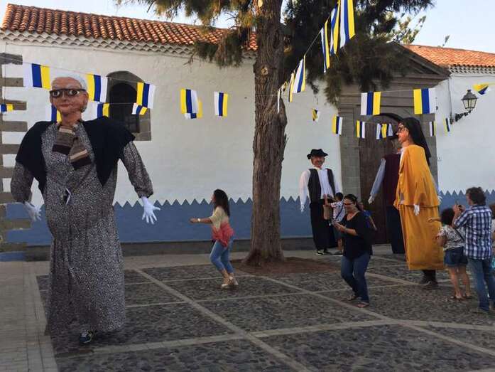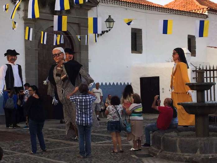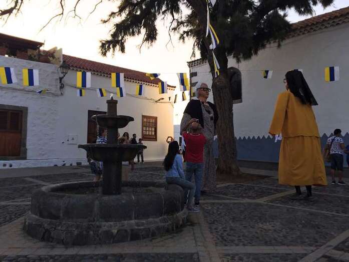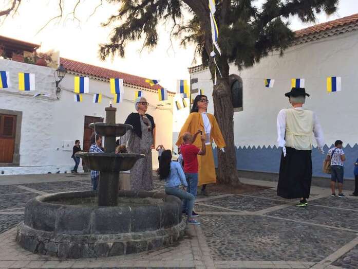 Rodeados de una alegre chiquillería, también de no pocos mayores, y a los sones de la melodía más popular de la Banda de Agaete, aunque sin la presencia de sus músicos, Carmelito, Juanita la costurera y Antoñita Benítez brincaron y corrieron caracterizados en papahuevos por los principales enclaves del conjunto histórico-artístico de San Francisco.