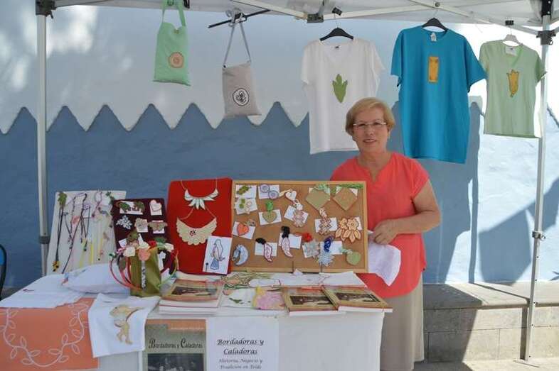 Entre las cientos de personas que se acercaron durante la mañana  de este domingo al barrio estuvo la consejera insular de Industria, Comercio y Artesanía, la teldense Minerva Alonso, que compartió con los artesanos que exponían sus productos, entre ellos la bordadora teldense Josefa Dolores Peña Galván.