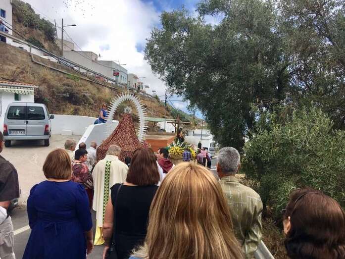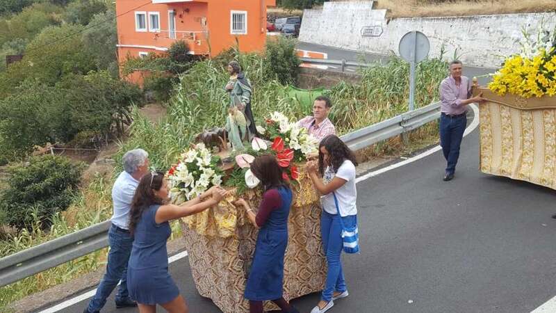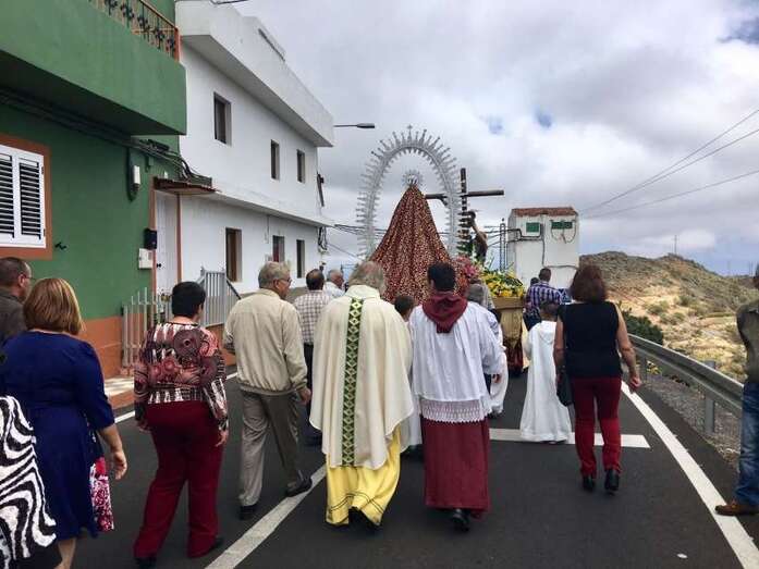 Decenas de vecinos de lugar y foráneos participaron en el acto religioso oficiado por el párroco de la zona, el conocido Padre Báez, y  la comitiva que recorrió las calles del barrio teldense más alejado del casco urbano, estuvo acompañada por la Banda Municipal de Música y autoridades públicas.