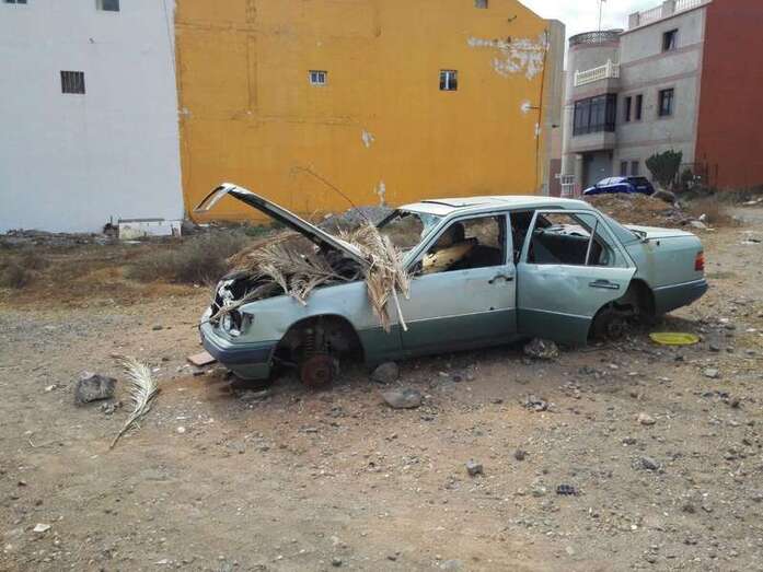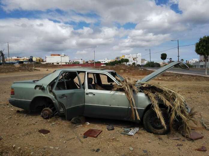 Telde.- La explanada que antaño albergaba el antiguo campo de fútbol de El Calero se ha convertido de manera improvisada en un cementerio de vehículos abandonados. Los vecinos, que ya han alertado a la Policía Local y presentado escritos en el Ayuntamiento, exigen a las autoridades que tomen cartas en el asunto.