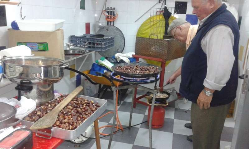 La jarana comenzó a las 17.00 horas, momento en que un grupo comenzó a jugar a la petanca en las canchas del parque urbano para al filo de las 20.00 horas pasar al local social del club, donde cambiaron las bolas de la petanca por las ficha del dominó y las partidas de zanga, mientras se asaban las castañas.