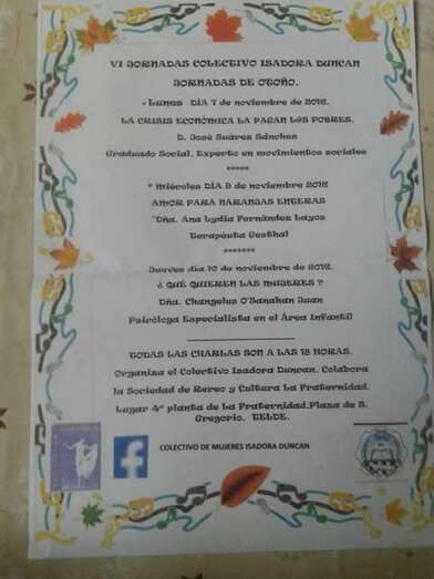Telde.- José Suárez Sánchez, graduado social y experto en movimientos sociales, abrió esta tarde las VI Jornadas del Colectivo de Mujeres Isadora Duncan con una charla en la entidad cultural y recreativa La Fraternidad sobre los efectos de la crisis económica en los sectores menos favorecidos de la sociedad. TA avanza imágenes.