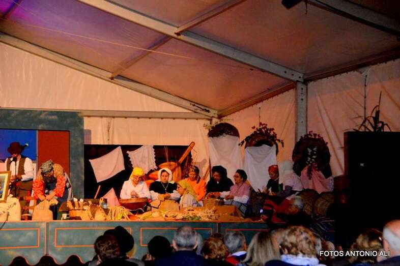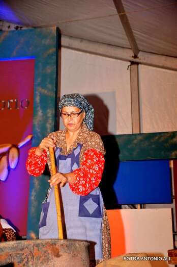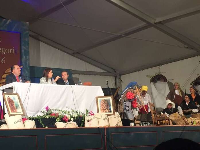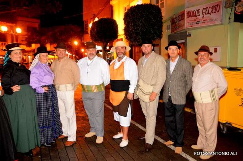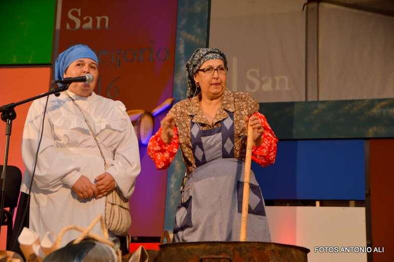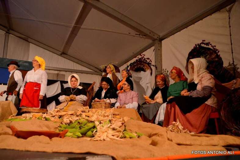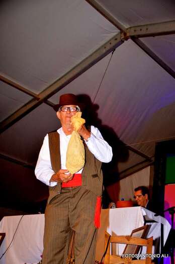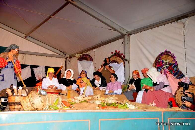 Pero la noche no acabó ahí. Tras la intervención del pregonero y de la alcaldesa de Telde comenzó un homenaje al gofio. Una escenificación a cargo de la Escuela Municipal de Folclore en la que participó el propio Gonzalo Suárez y que incluyó la recreación de una descamisada de millo. El espectáculo finalizó el reparto de pellas de gofio entre el público y bailes canarios. Hasta la alcaldesa Carmen Hernández se animó y bailó una pieza con el exsenador del PP, José Macías, que se hallaba entre los asistentes.
