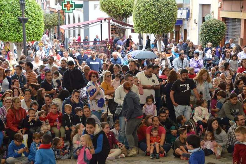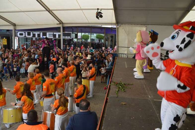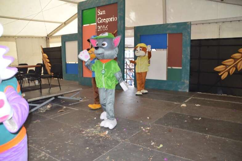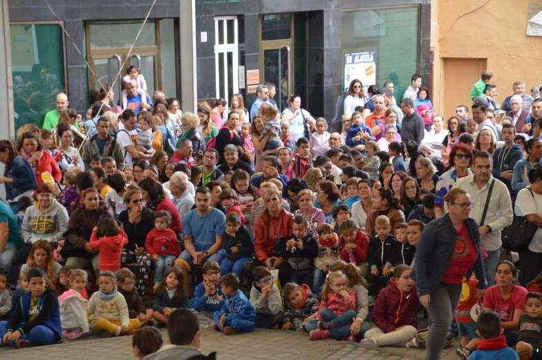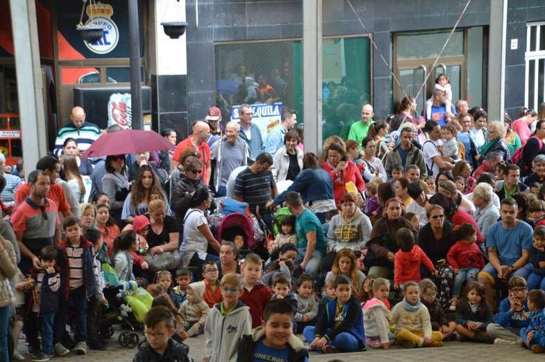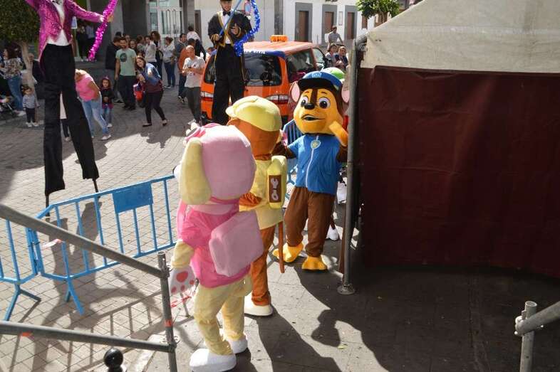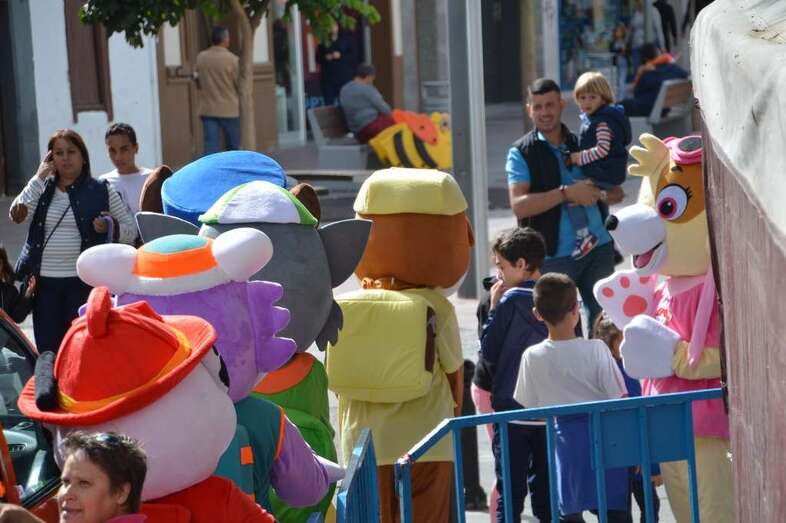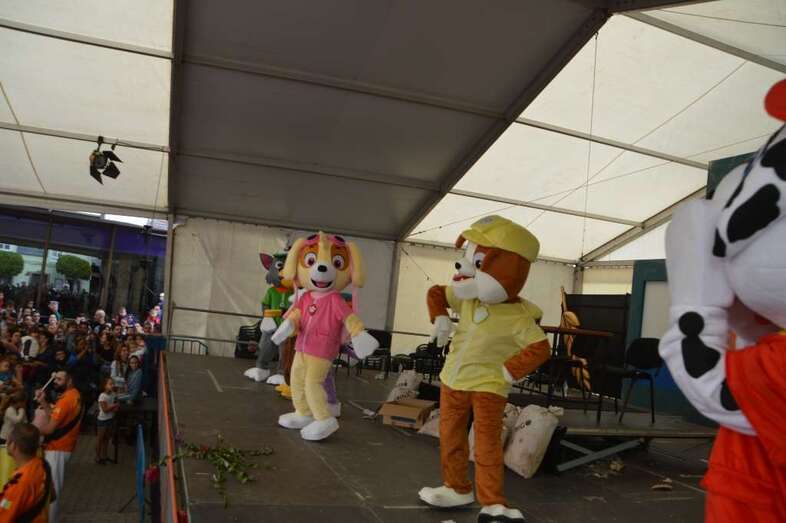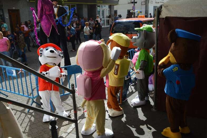 A las 12.00 horas salió de la plaza de San Gregorio un pasacalles con batucada y los personajes de la Patrulla Canina que bajaron por la Avenida de la Constitución y enfilaron luego la calle de Navarra hasta la plaza de Doña Rafaela, seguido por una multitud de niños con sus padres y madres.