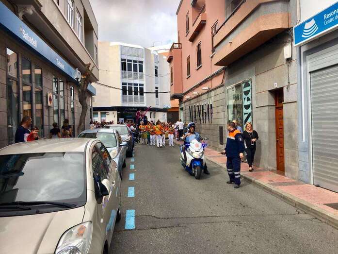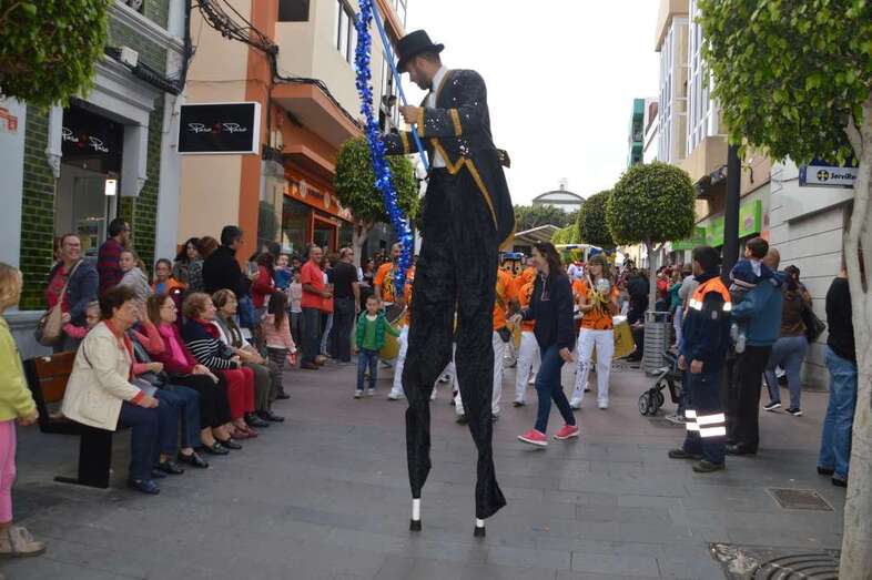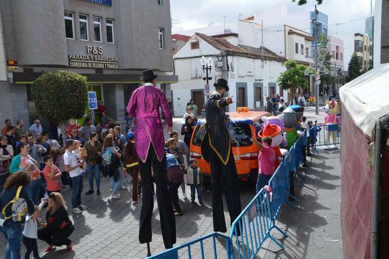 El pasacalles entre la carpa situada en las inmediaciones de la plaza de Los Llanos y el entorno del antiguo Mercado Municipal y la Plazoleta de Doña Rafaela  fue una marea de gente de todas edades que circuló como pudo con la animación de una batucada y dos zancudos.