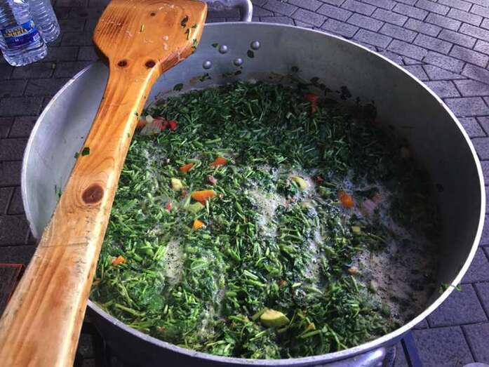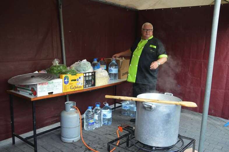 Desde primera hora de la mañana, Tonono Montesinos cocinaba a fuego lento y con mucho cariño, el suculento manjar que, a base de kilos y kilos de berros, judías pintas, costillas, zanahorias, calabazas habichuelas, batatas, calabacines, piñas y papas, horas después iba a abrir el apetito a más de uno.