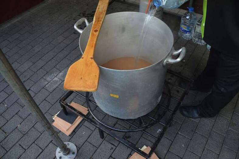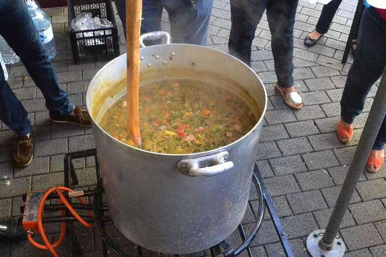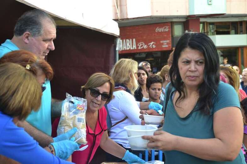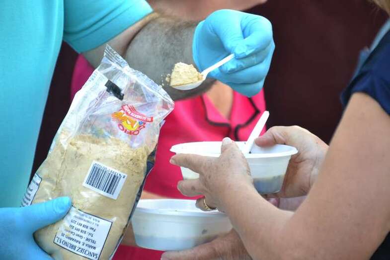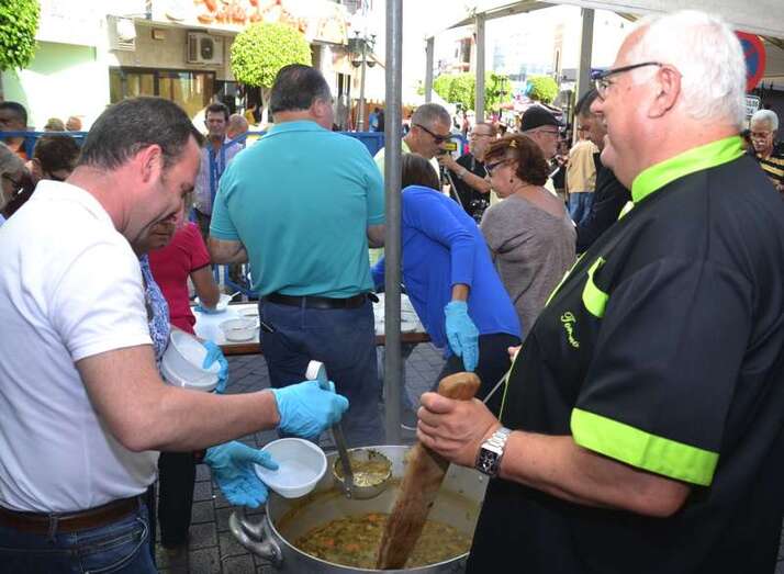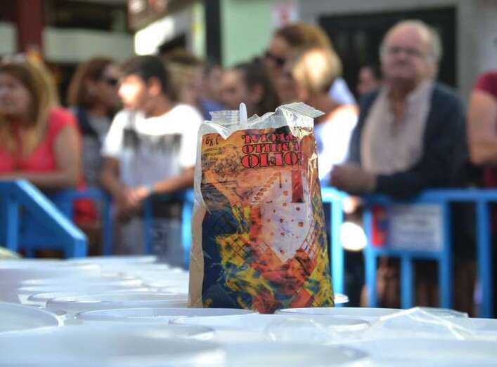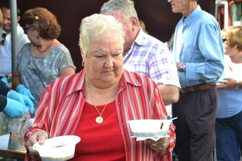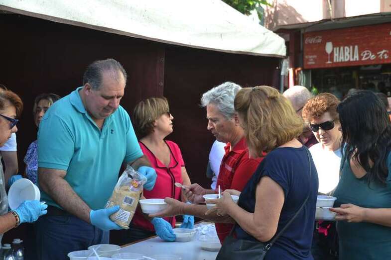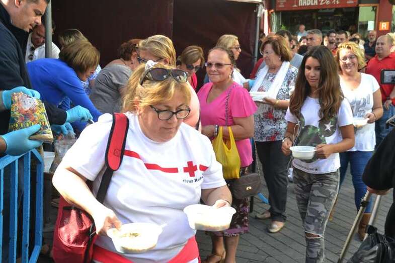 La cola incluso llegaba a mitad de la calle Cervantes. Y con media hora de adelanto sobre el horario previsto en el programa, que fijaba esta degustación a las 14.00, comenzó el reparto de las cerca de 400 raciones de potaje canario debidamente acompañado con un puño de gofio del Molino de Fuego, como manda la tradición en Telde.
