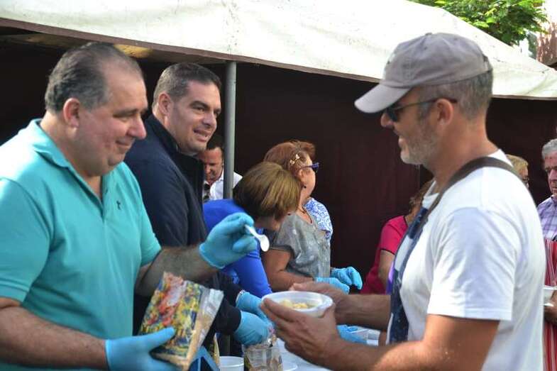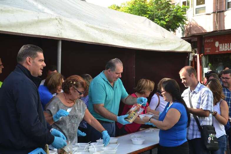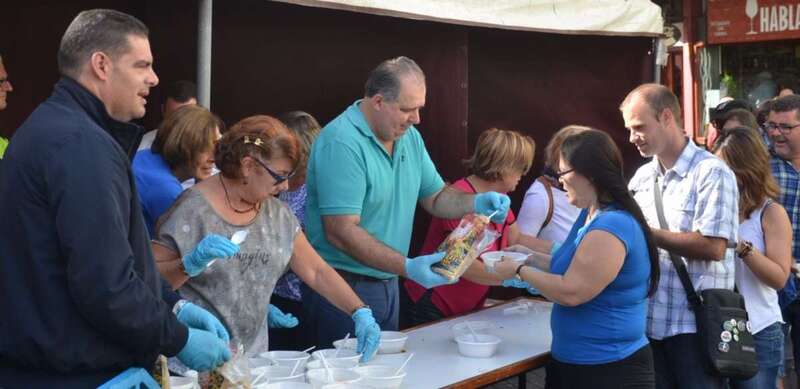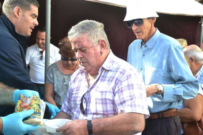 Los concejales Juan Martel, Eloy Santana y Diego Ojeda, a los que más tarde se sumaría Agustín Arencibia, hicieron de maestros de ceremonia y junto con Tonono Montesinos, el personal de Festejos y varias voluntarias, entre ellas la presidenta de los puesteros del Mercado de Telde, Ana Jiménez; comenzaron a dar salida al condumio.
