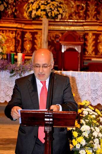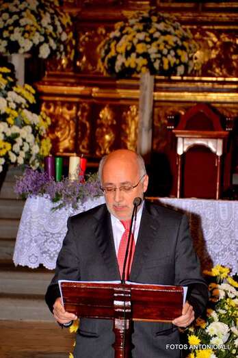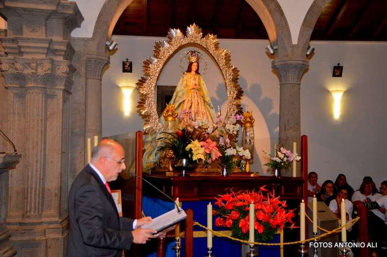 Ya dentro del tempo, tras la presentación a cargo de Anatael Santana, presidente del patronato organizador de los festejos y ante autoridades locales e insulares y vecinos que abarrotaban el recinto, el pregonero inició su discurso invitando a la población a “ponerse el traje y el alma de fiestas” y aprovechar estos días para “expresar emociones, afianzar amistades, celebrar tradiciones, reponer fuerzas y ánimo, por el desgaste del año vivido y con la esperanza que el próximo permita avanzar en los objetivos de mejora que deseamos”.
