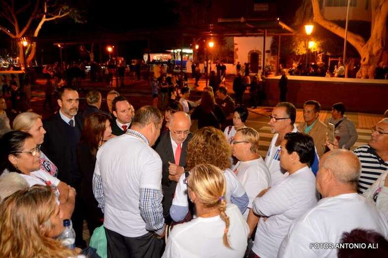A su llegada a la iglesia de La Concepción, acompañado de la alcaldesa Carmen Hernández, Morales mantuvo un breve encuentro con los componentes de la RSPJ que protagonizaban la protesta y adquirió con ellos el compromiso de estudiar su propuesta.