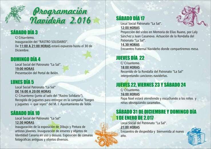 Telde.- El Patronato de Fiestas La Sal quiere que La Garita viva la Navidad con intensidad y con este fin ha programado diferentes actos para estas semanas. El pasado domingo, inauguró en su sede un portal de Belén. TA ofrece el programa de actividades e imágenes del nacimiento canario.