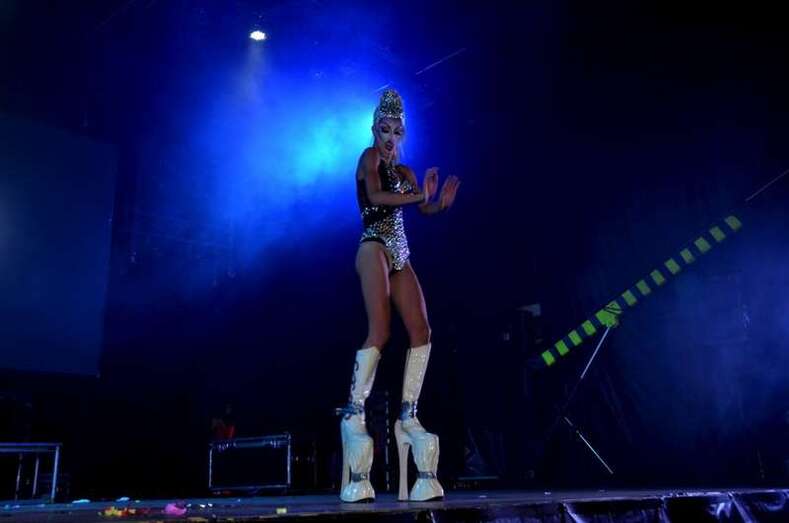 Con una plaza abarrotada que esperaba con ansias ver en acción a estos drags sobre las vertiginosas plataformas, uno a uno fueron poniendo en escena sus fantasías y coreografías sobre el escenario.